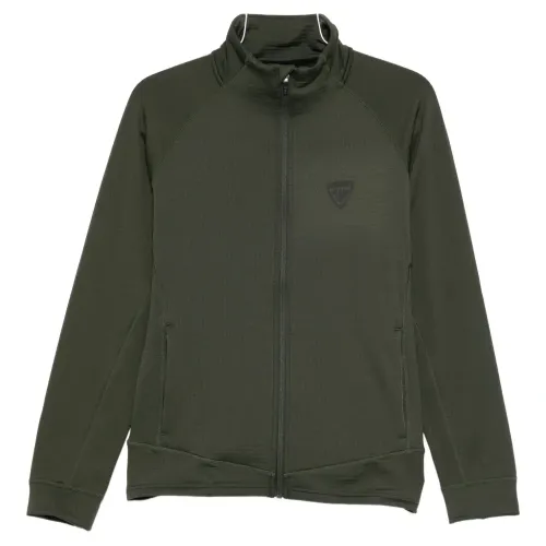 оливково-зеленый застежка-молния спереди высокий воротник длинные рукава вышитый логотип на груди