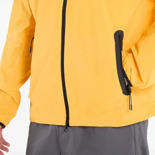 желтая толстовка с капюшоном, застежкой-молнией по всей длине, карманами на молнии, длинными рукавами и логотипом
