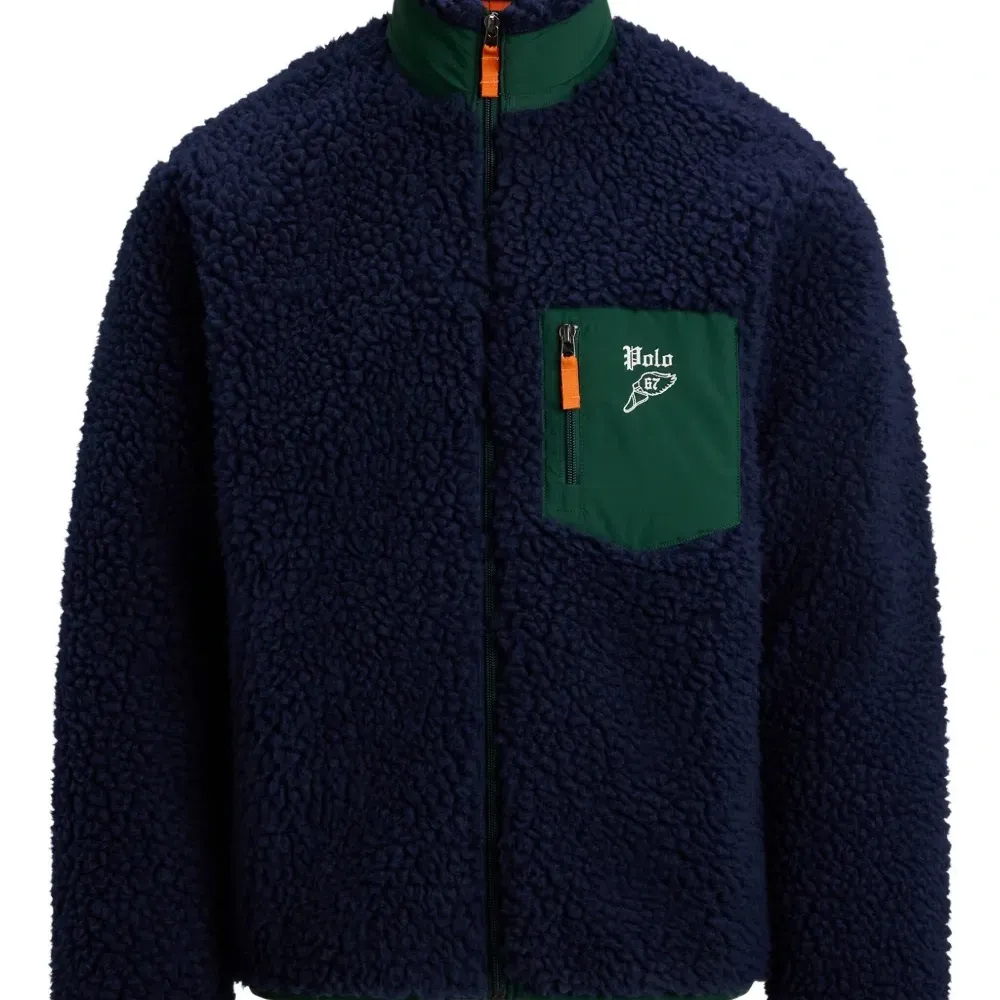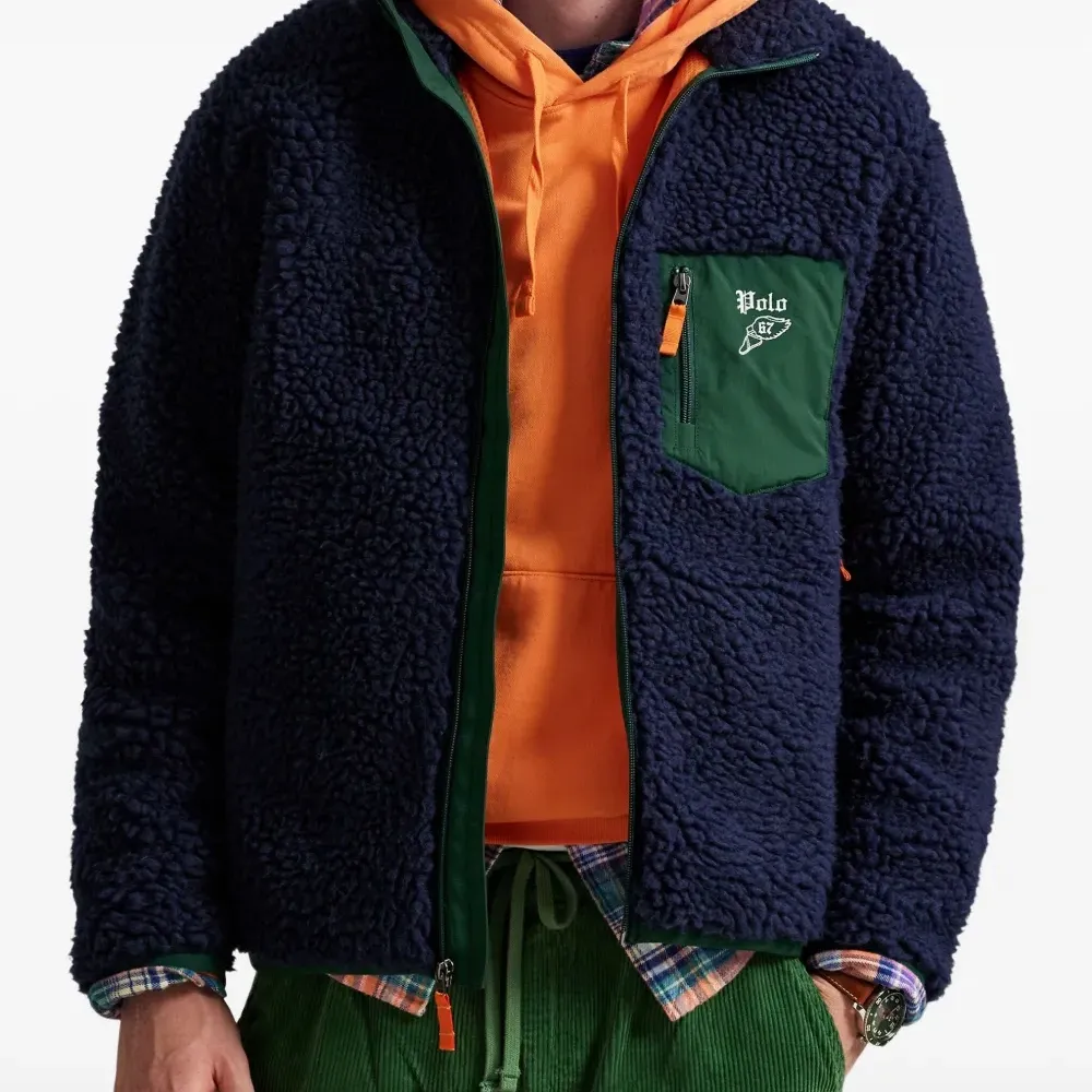 темно-синий фактура флиса застежка-молния высокий воротник нагрудный карман детали с логотипом