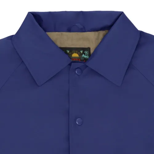 голубой цвет, кулиска на подоле, прорезные карманы, застежка на кнопки