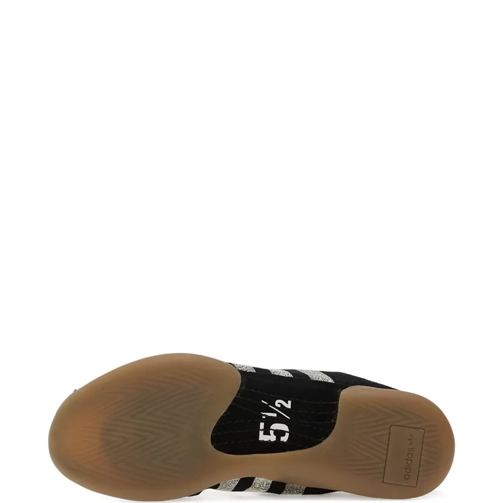черные полоски, логотип, круглый нос, шнуровка, резиновая подошва