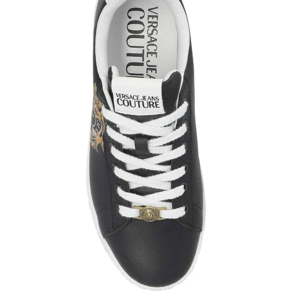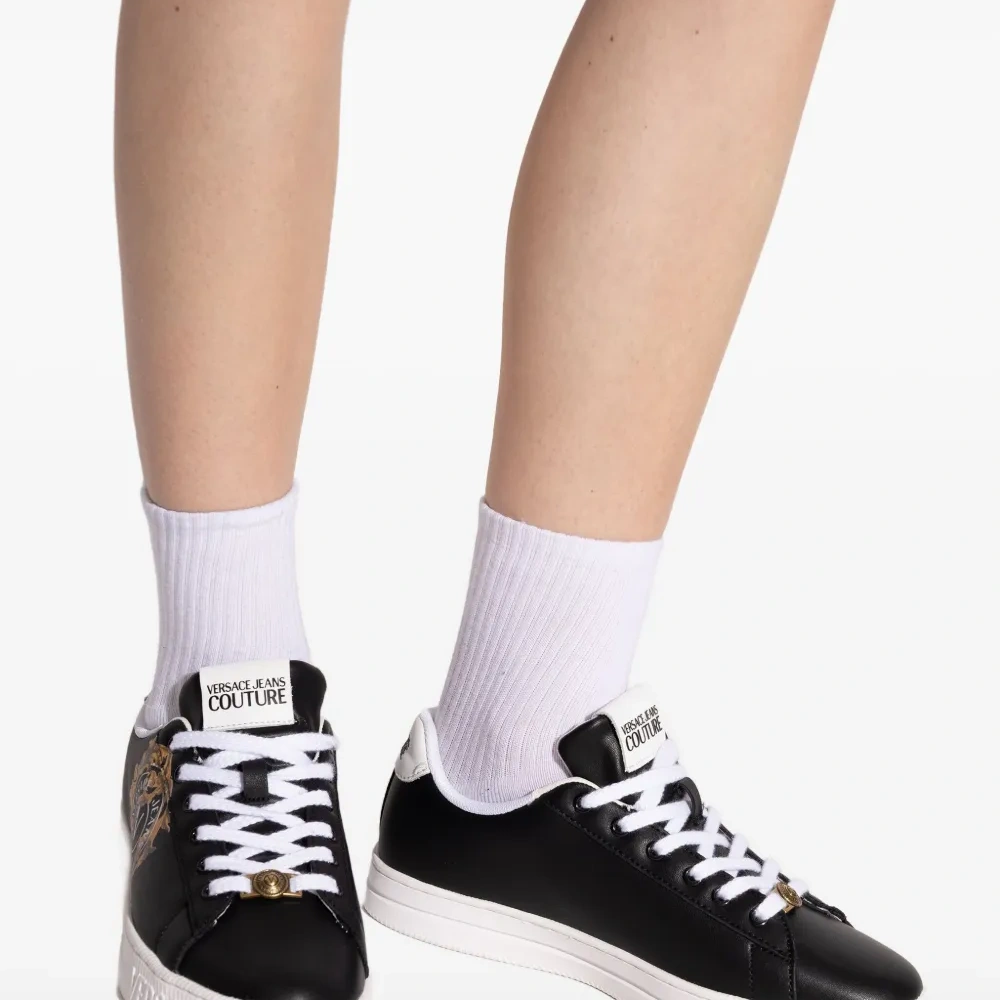 черные кроссовки с принтом логотипа, шнуровкой, деталями с логотипом и резиновой подошвой