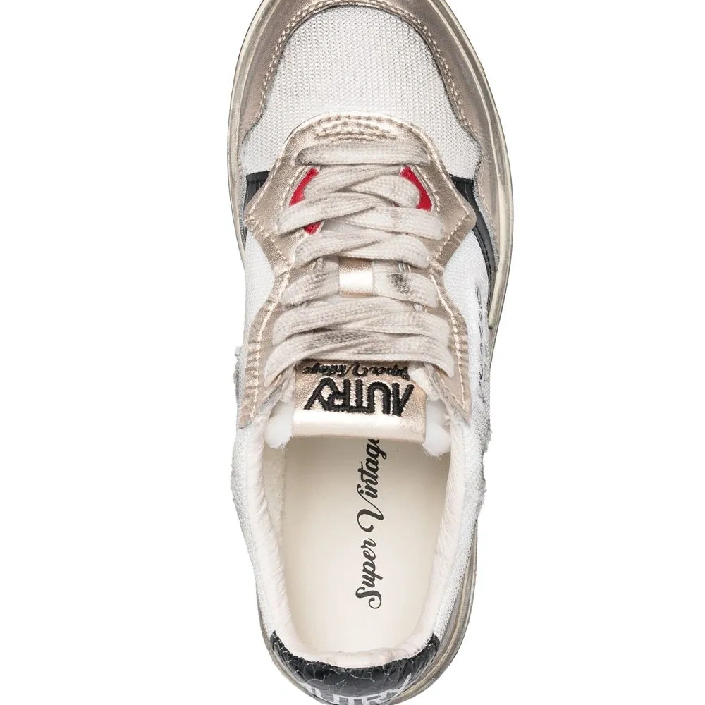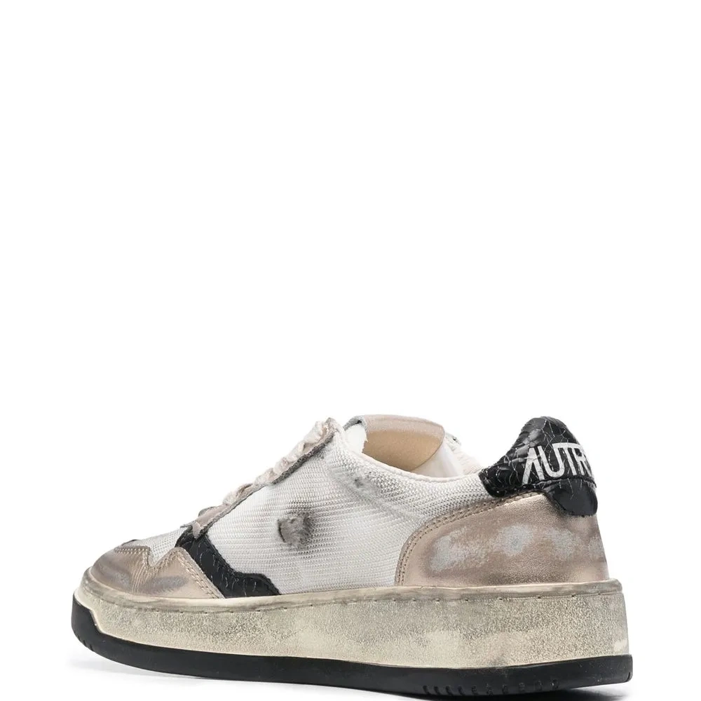 Кремовый, золотистый, телячья кожа, вставки, нашивка с логотипом сбоку, нашивка с логотипом на язычке, закругленный носок, шнуровка спереди и плоская резиновая подошва.