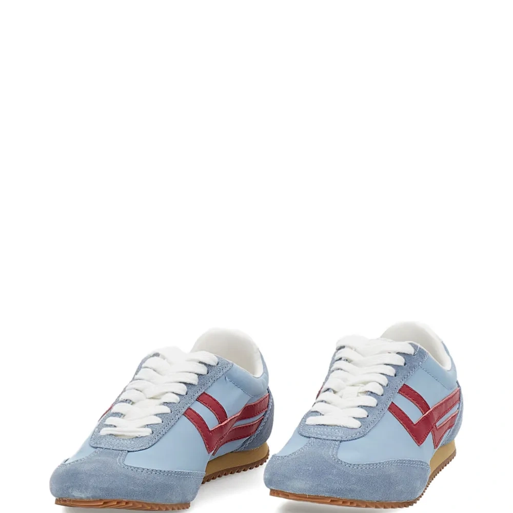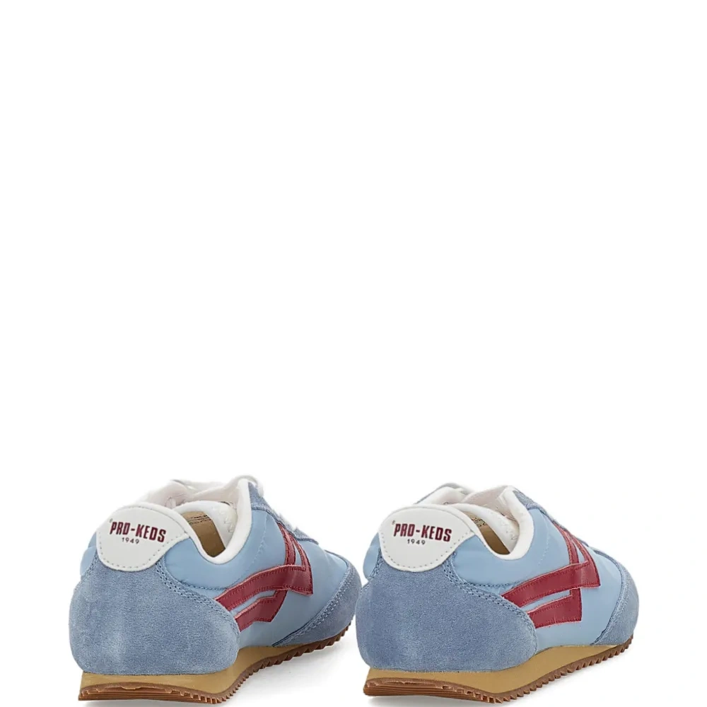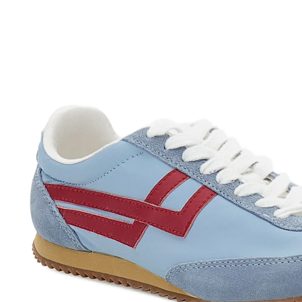синие и красные детали с логотипом, шнуровка, вставки из замши, контрастная задняя часть пятки