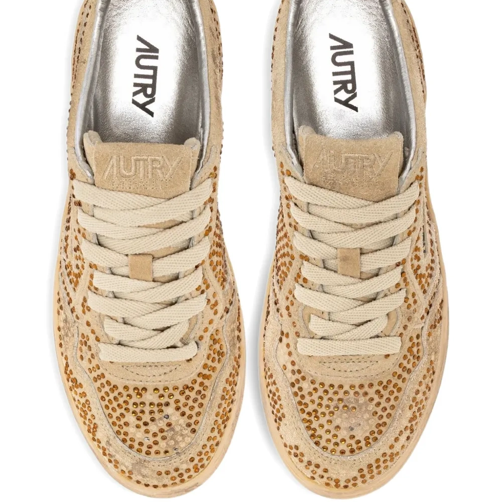 песочно-кремовый цвет, украшение стразами, замшевые вставки, плоские шнурки, резиновая подошва