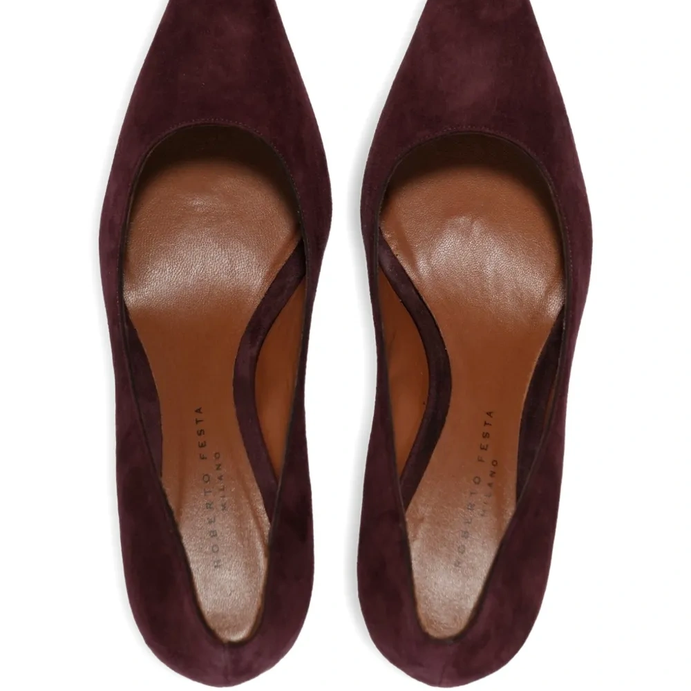 бордовые замшевые туфли с заострённым носком