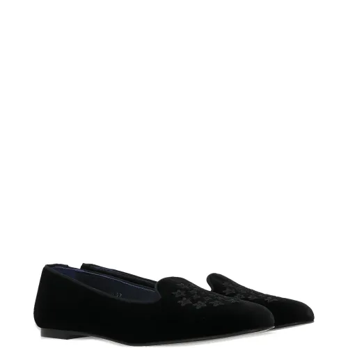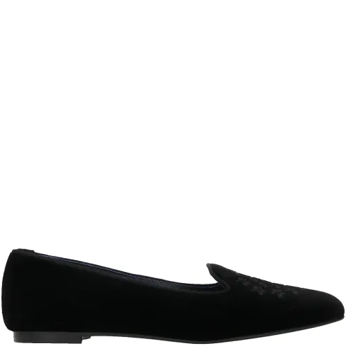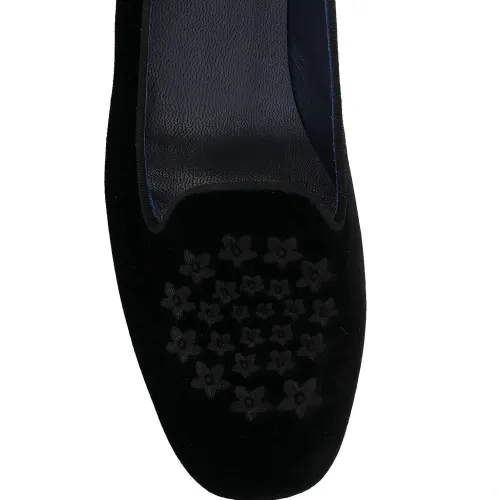 черный верх из бархата с цветочной вышивкой, круглый носок, отделка из грозгрина, плоская подошва