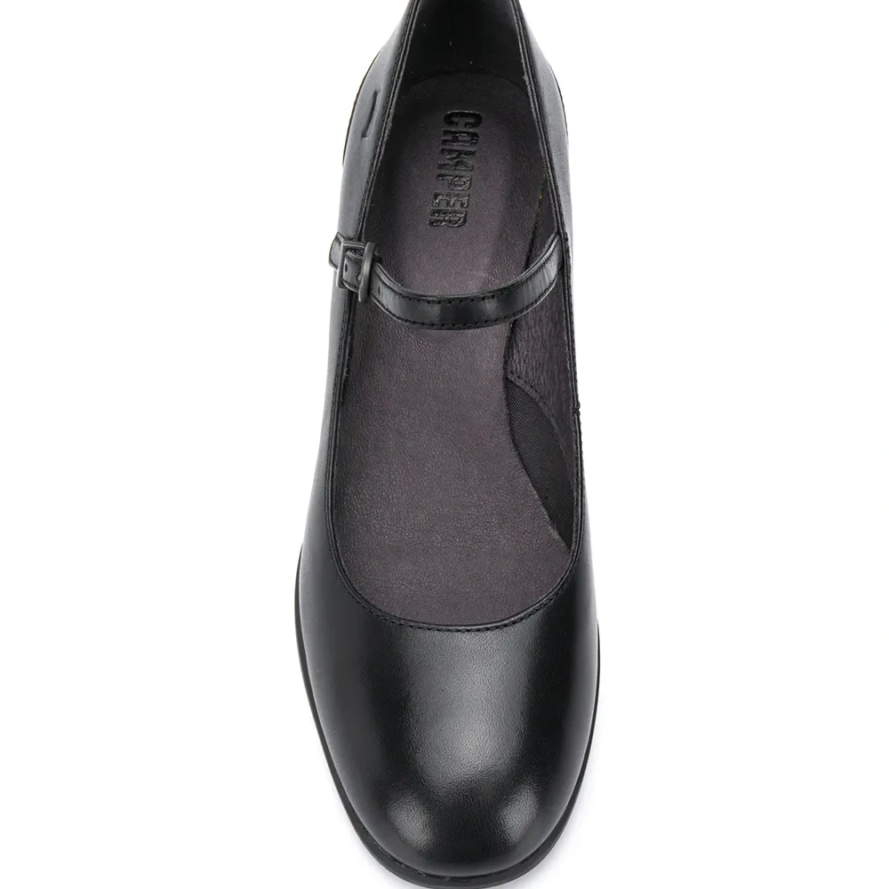 Туфли Katie на массивном каблуке от Camper. Стелька с логотипом, массивный каблук, боковая застежка на пряжке и закругленный носок. Цвет: черный. POSITIVELY CONSCIOUS: Производитель кожи, из которой сделана эта модель, прошел аудит международного сообщества кожевников (Leather Working Group) и получил золотую медаль, поэтому вы можете не сомневаться, что делаете ответственный выбор