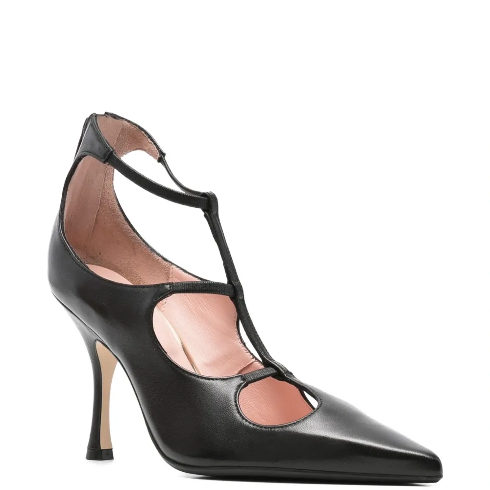 черный вырезы заостренный носок каблук-шпилька застежка-молния сзади Т-образный ремешок