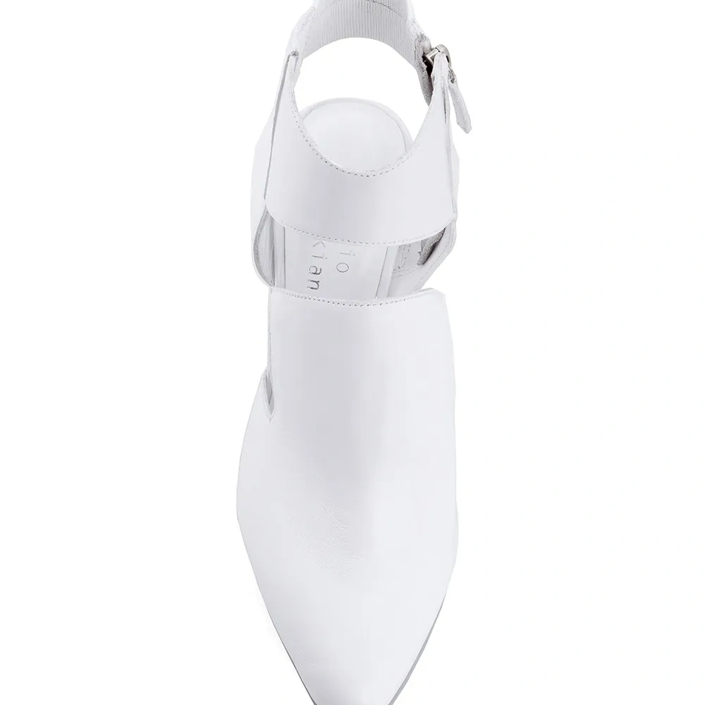 Slingback mules от Studio Chofakian. Заостренный носок, лакированная кожа, застежка на молнии сбоку и массивный высокий каблук. Цвет: белый.