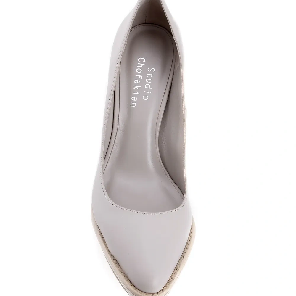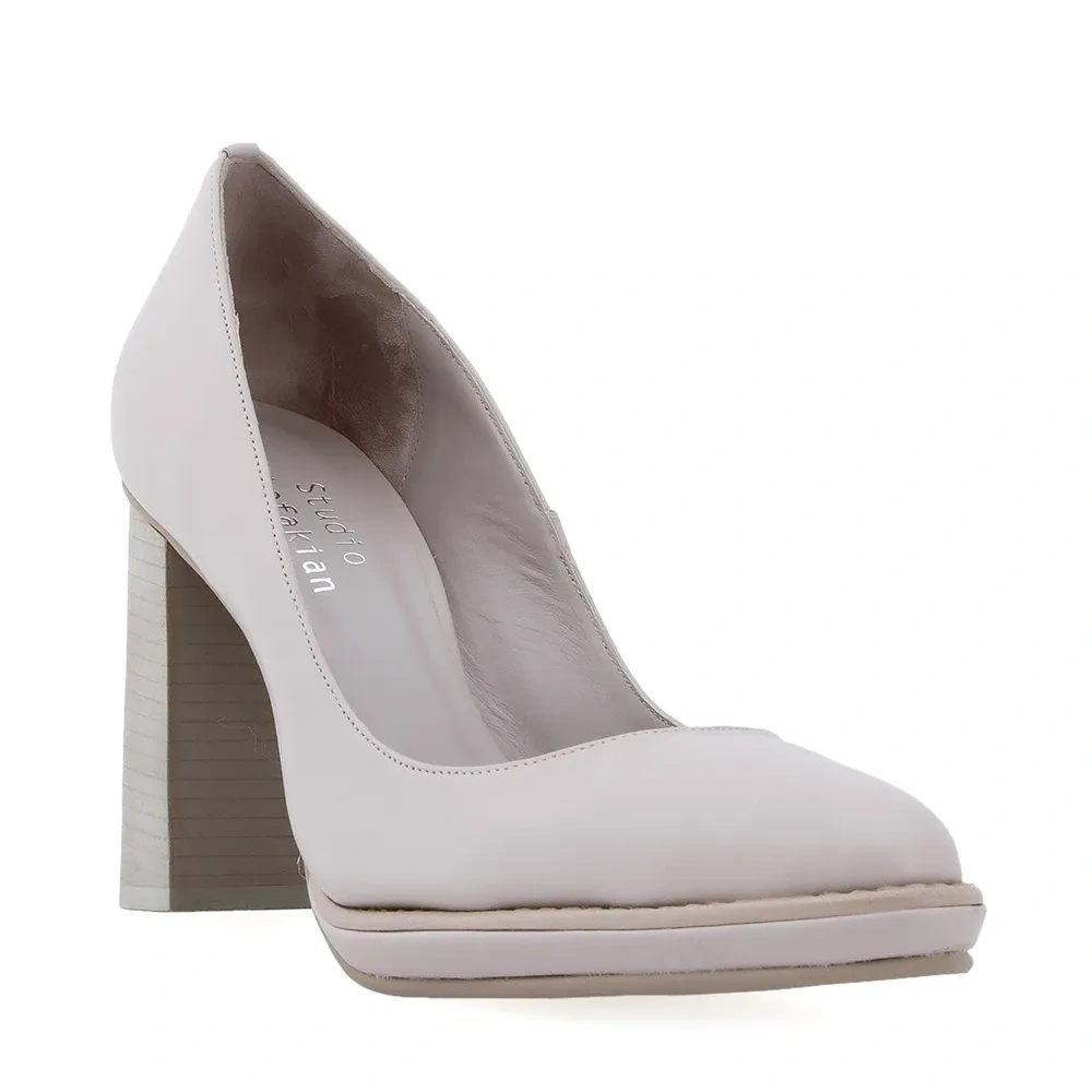 Кожаные лодочки кремового оттенка от STUDIO CHOFAKIAN. Заостренный носок, массивный высокий каблук.