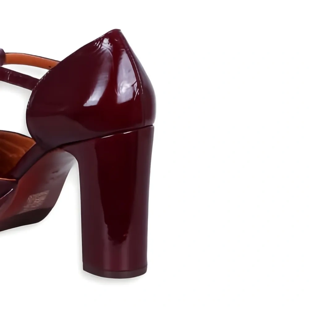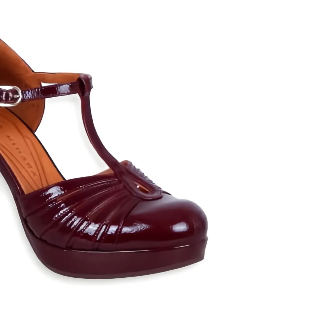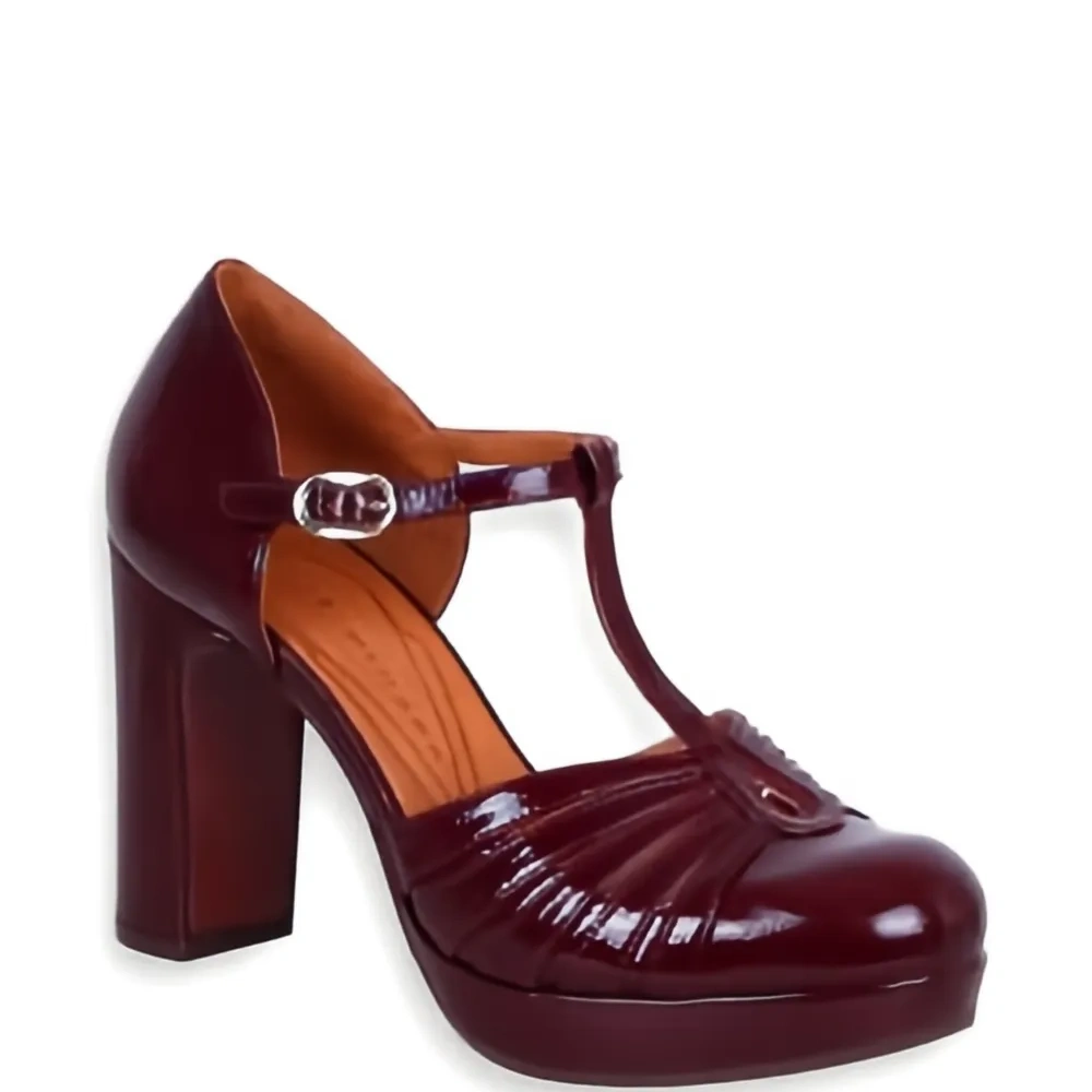 красные туфли на платформе с ремешком в виде буквы Т, на толстом каблуке, с застёжкой-пряжкой