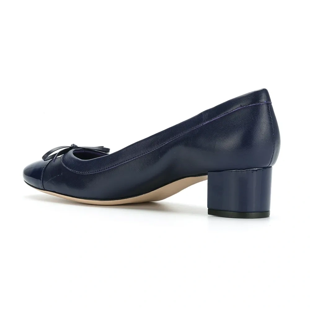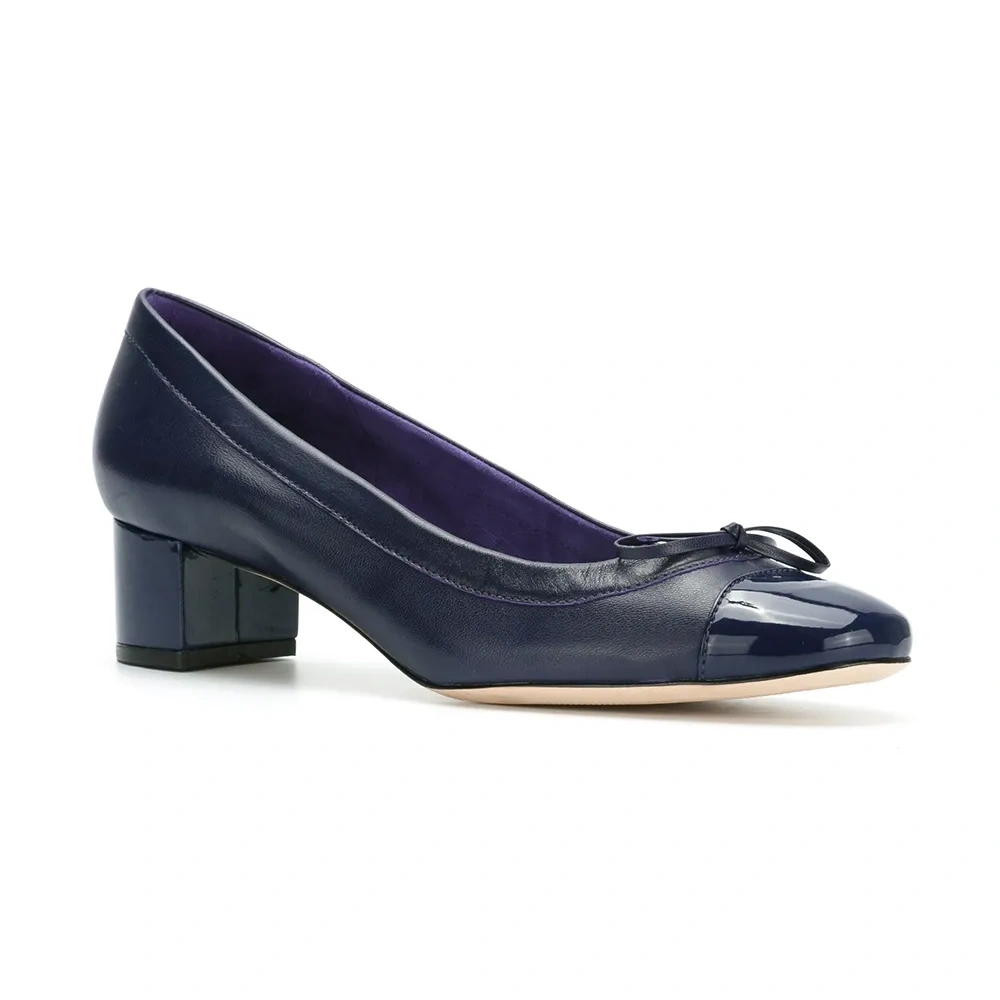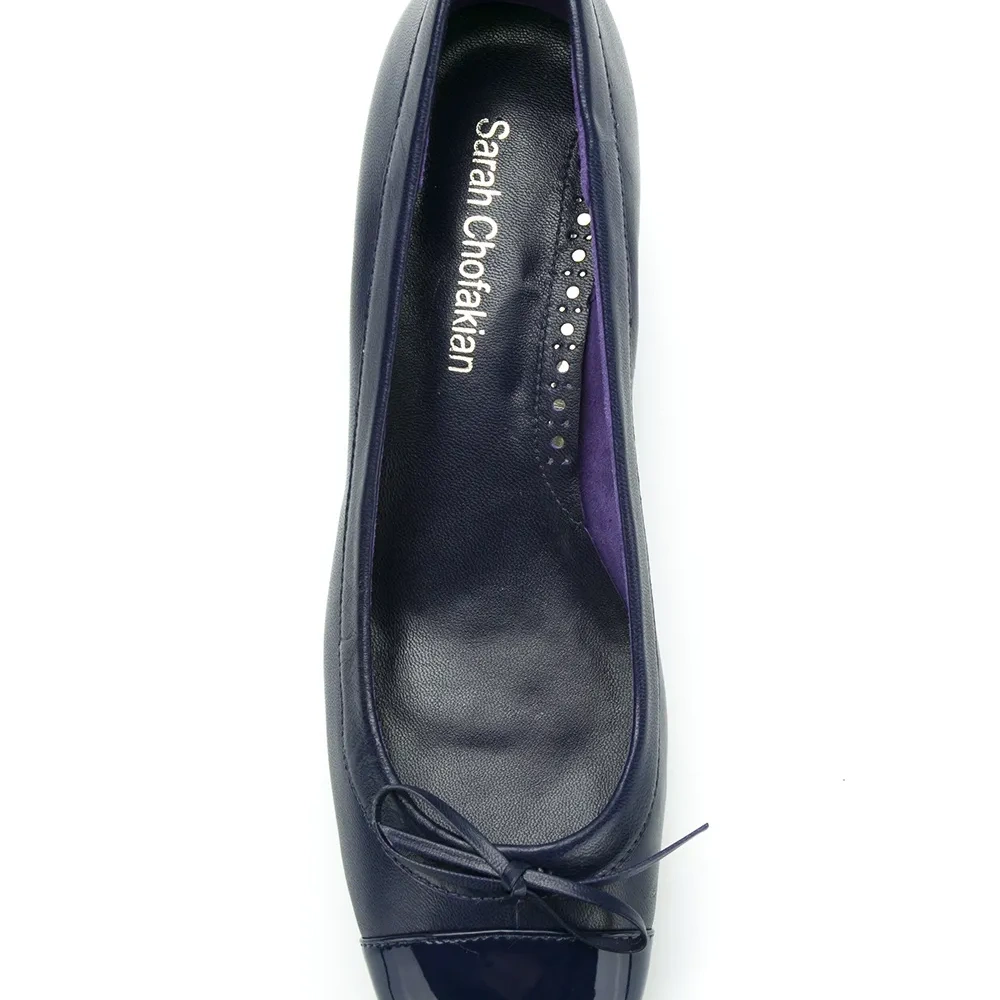Синие кожаные лодочки с лакированным носком от Sarah Chofakian. Каблук средней высоты.