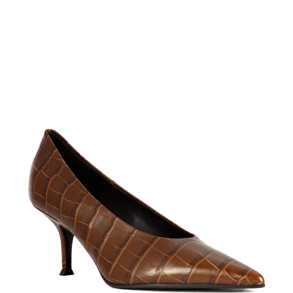 коричневый с эффектом крокодиловой кожи, зауженный носок
