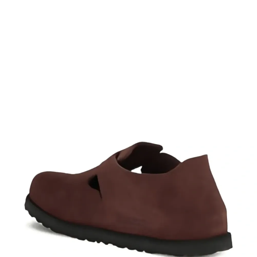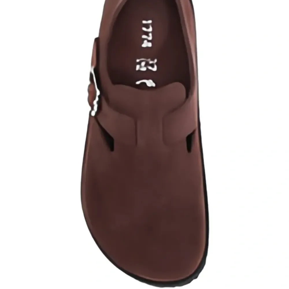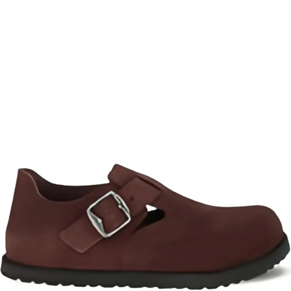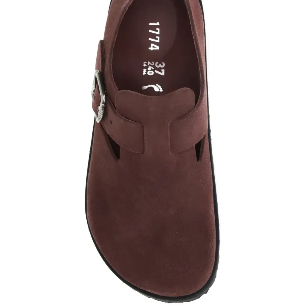 верх из бордовой замши, застежка-пряжка, ремешок в виде буквы T, вырезные детали, плоская подошва