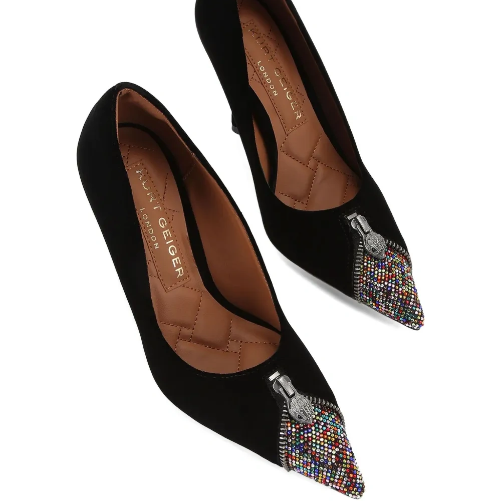 черные туфли-лодочки на шпильке с украшенным мысом, заостренным носком и молнией