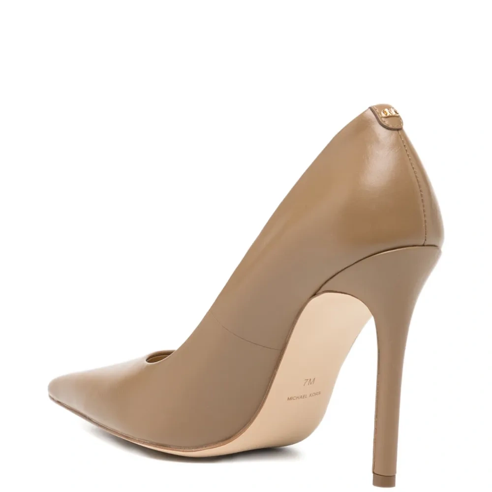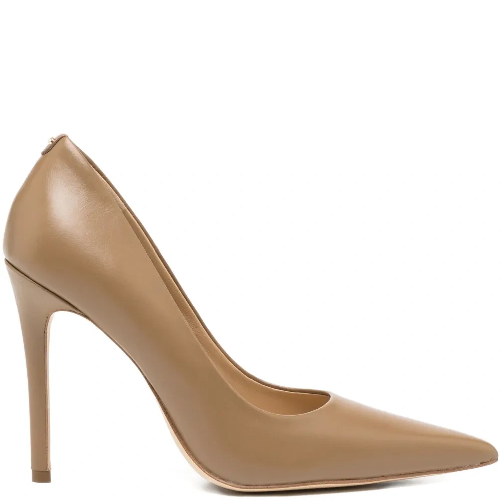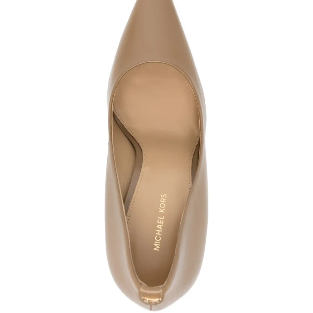 верблюжий коричневый накладка с логотипом золотистого цвета заострённый носок стелька с брендингом