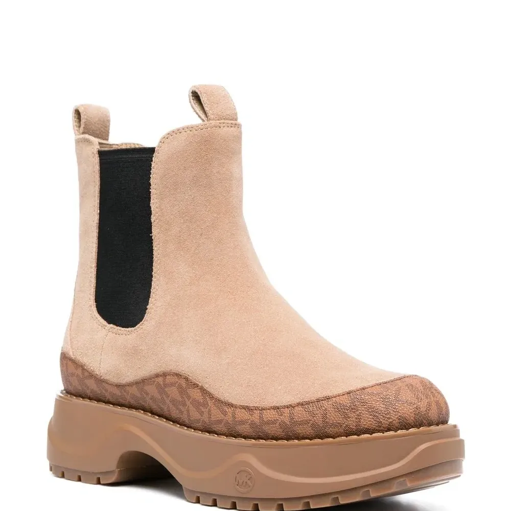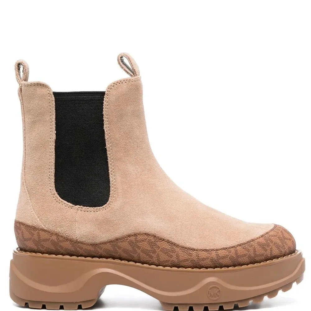 Монограмма, вставки, эластичные боковые вставки, петля для подтягивания сзади, высота по щиколотку, закругленный носок и массивная резиновая подошва c протектором.