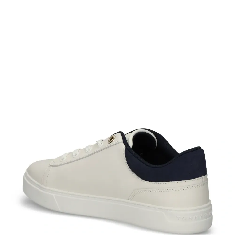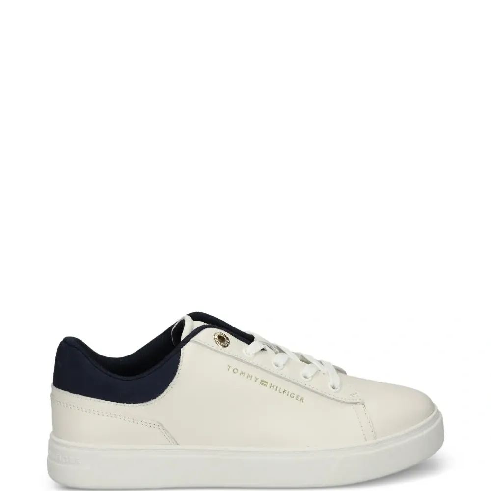 молочно-белый цвет, тёмно-синяя отделка, шнуровка, закруглённый носок, отделка с золотистыми элементами