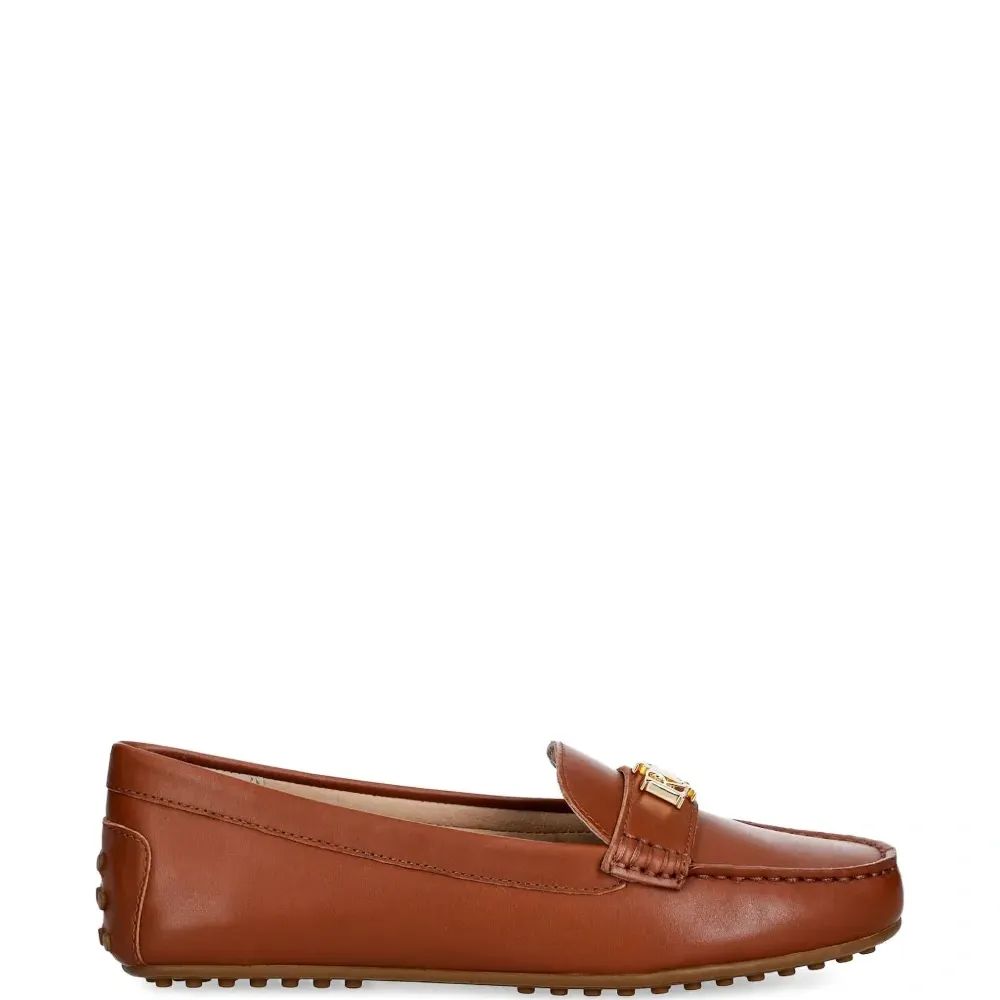 светло-коричневый, с золотистым логотипом, модель без застежки, плоская подошва, прорезь для монеты, тональная прострочка