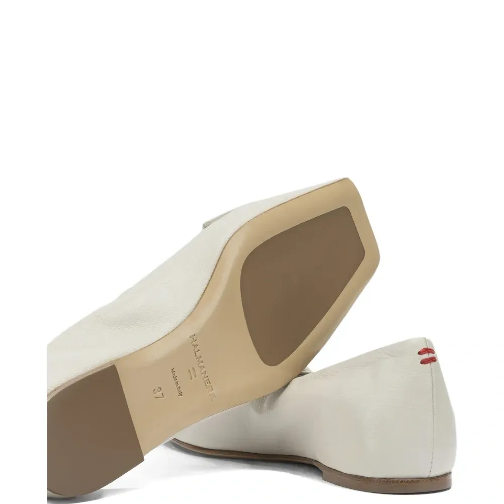 белые босоножки с открытым носком, металлической фурнитурой серебристого цвета, плоской подошвой и квадратным носком