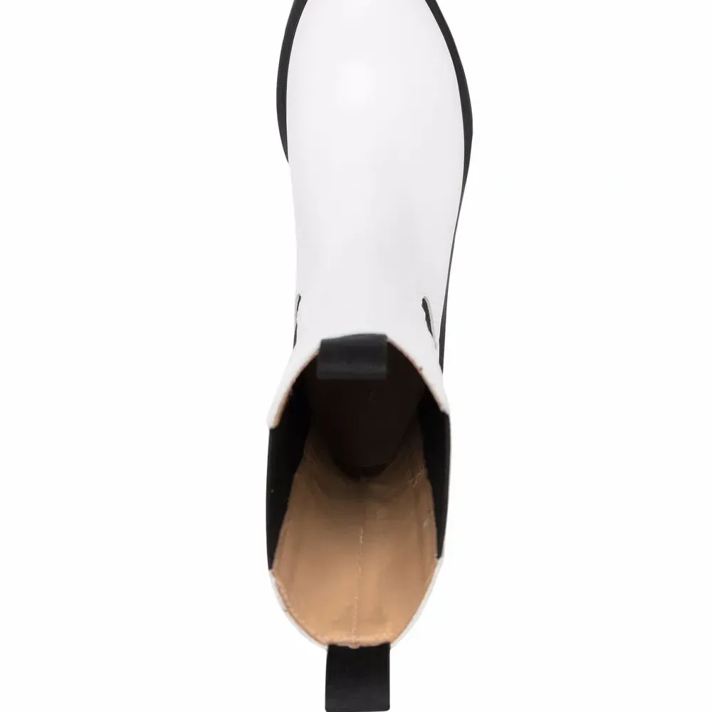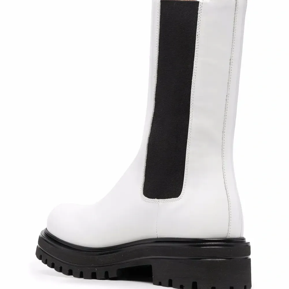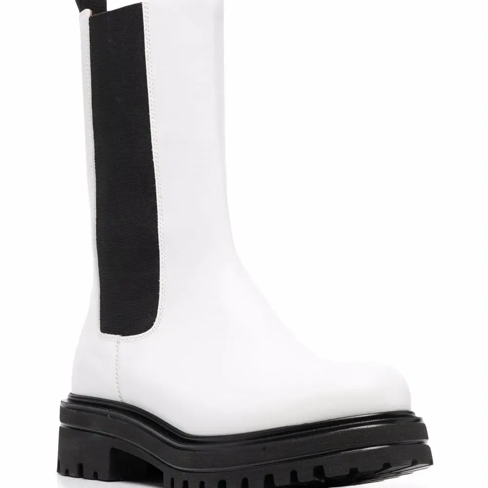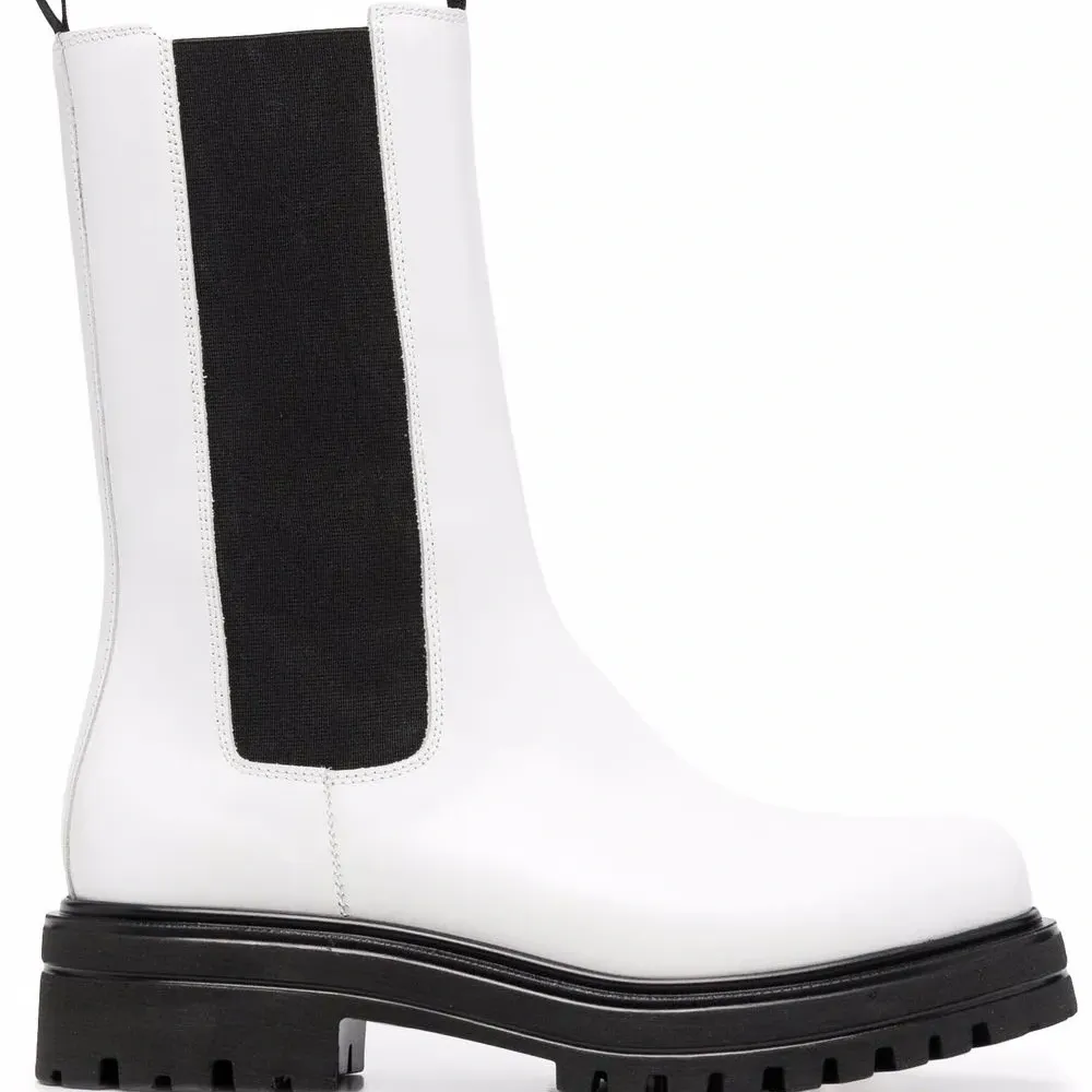 Эластичные боковые панели, двойная петля для подтягивания, миндалевидный носок, длина до середины икры, стелька с логотипом и рифленая резиновая подошва.