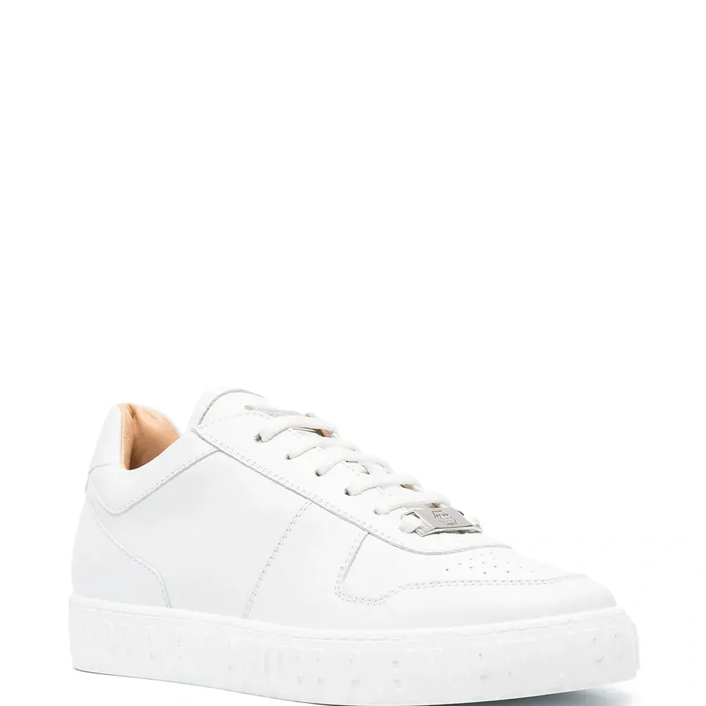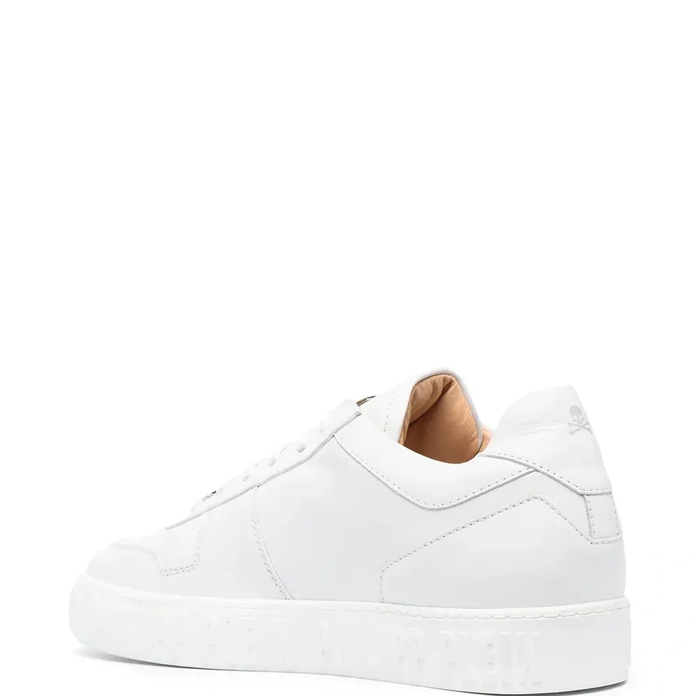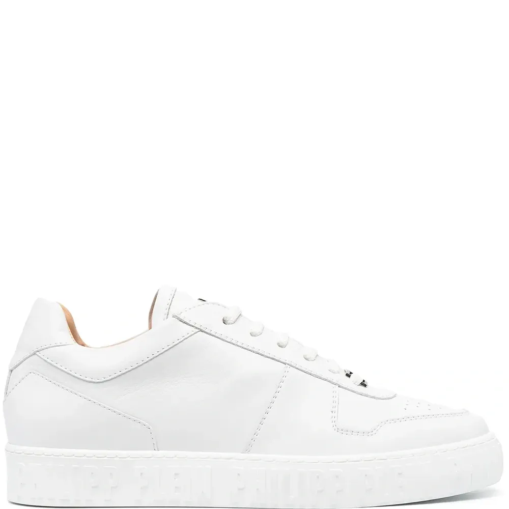 Тисненый логотип спереди, металлический логотип, перфорация, закругленный носок, шнуровка спереди, стелька с логотипом и плоская резиновая подошва. Цвет: белый.