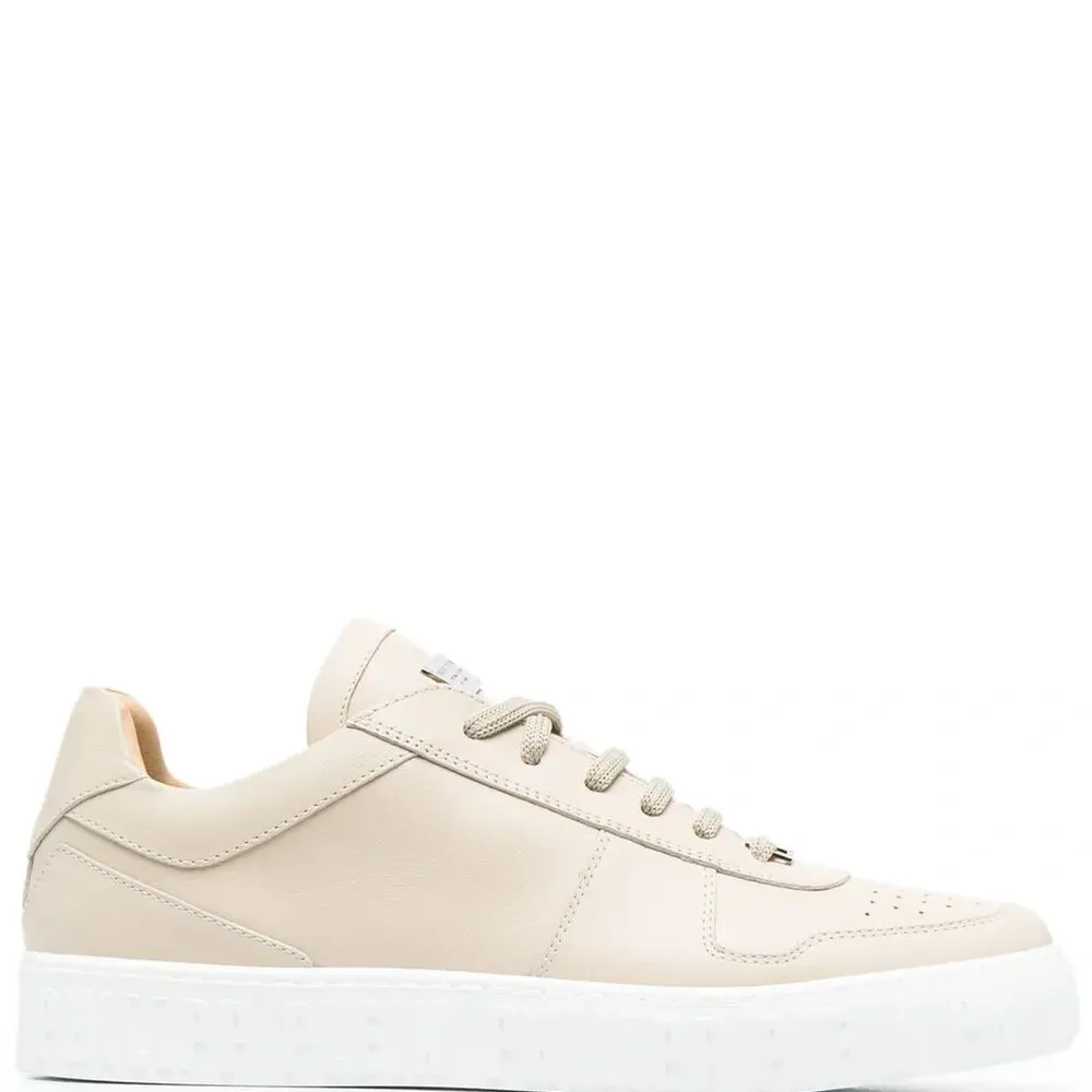 бежевый кожа закругленный носок перфорация логотип спереди шнуровка спереди нашивка с логотипом на язычке подвеска в виде черепа плоская резиновая подошва