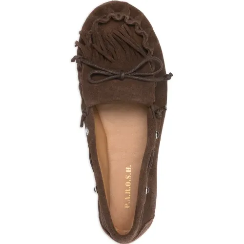 коричневые лоферы с бахромой и круглым носком