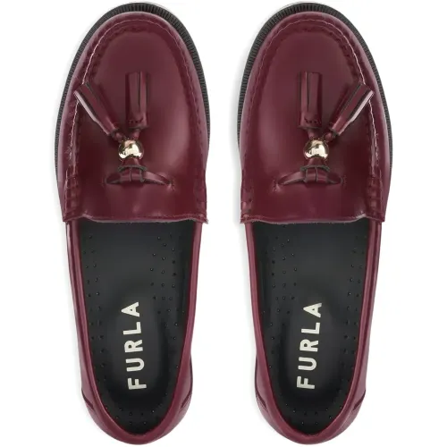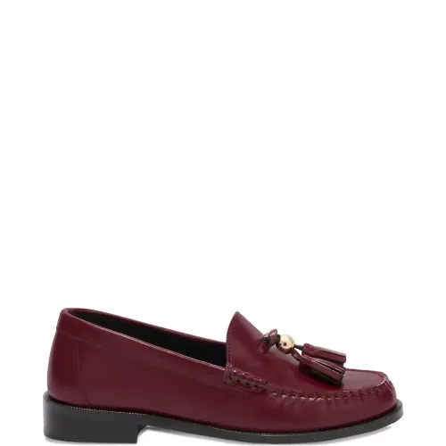красная смородина, отделка с бархатистой фактурой, квадратный носок, верхний ремешок, декоративная кисточка, кожа теленка