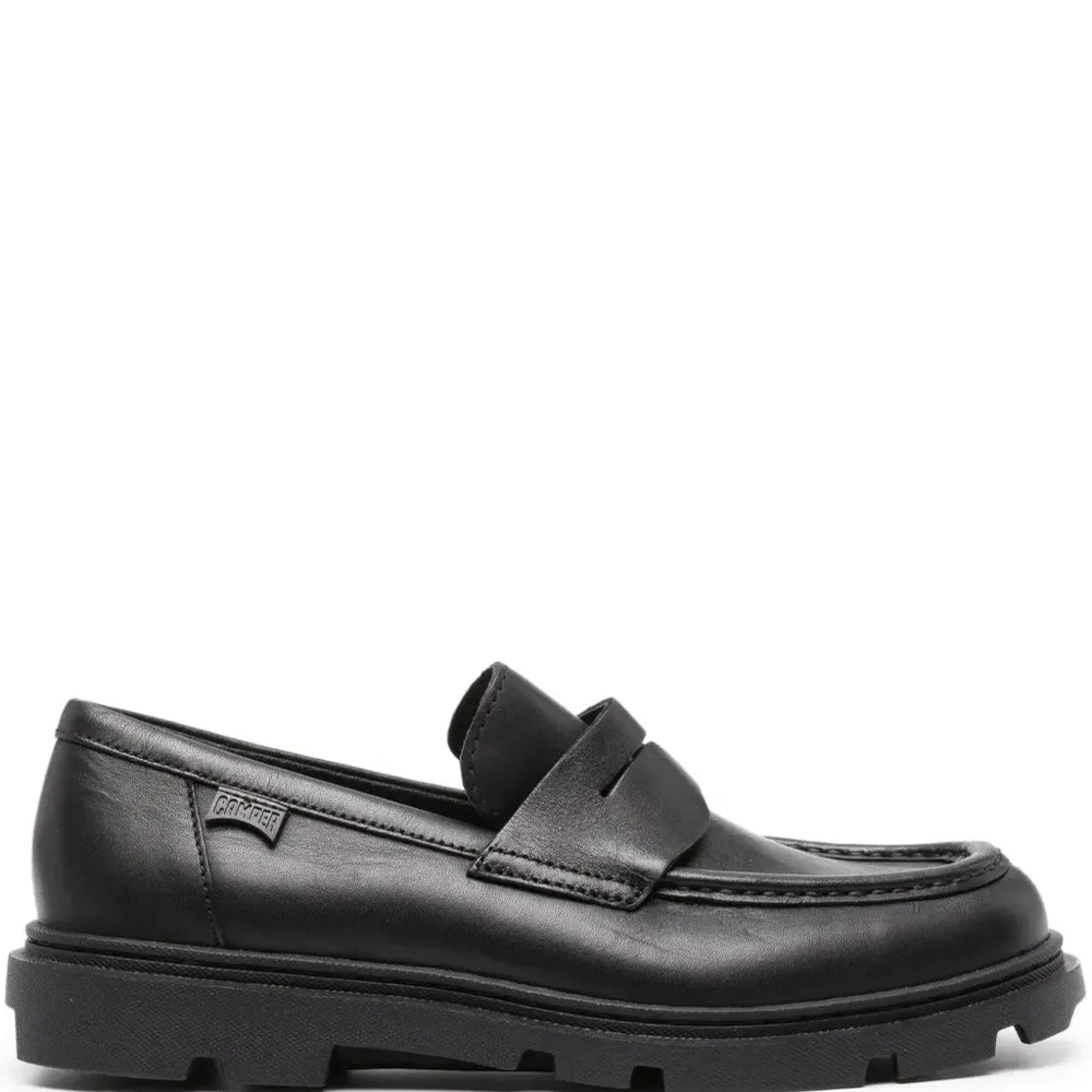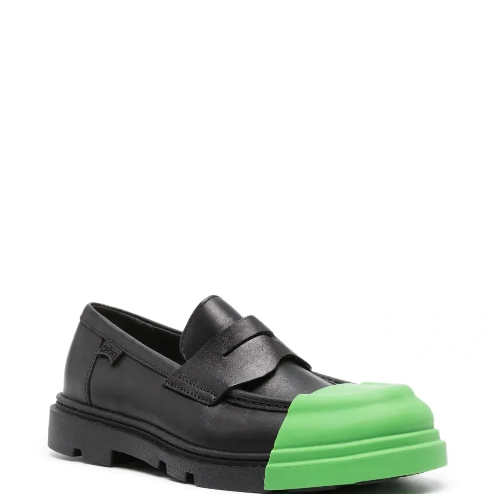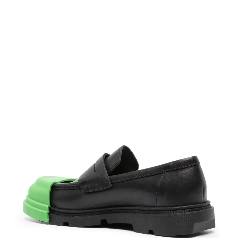 Черный, кожа, прорези на язычке, маленькая подвеска с логотипом, закругленный носок, рифленая резиновая подошва и модель без застежки.