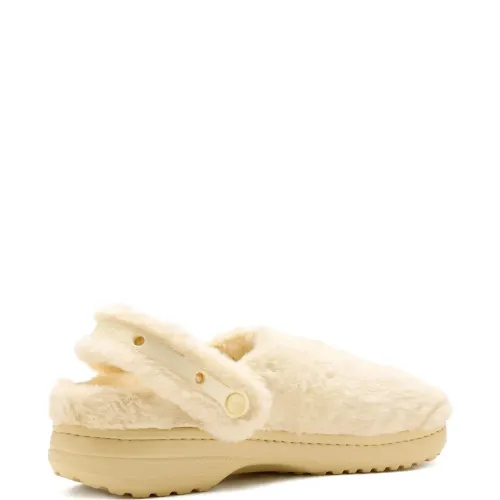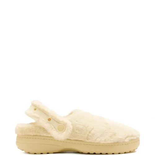 ванильные туфли с меховой отделкой, поворачивающимся ремешком на пятке, круглым носком и платформой
