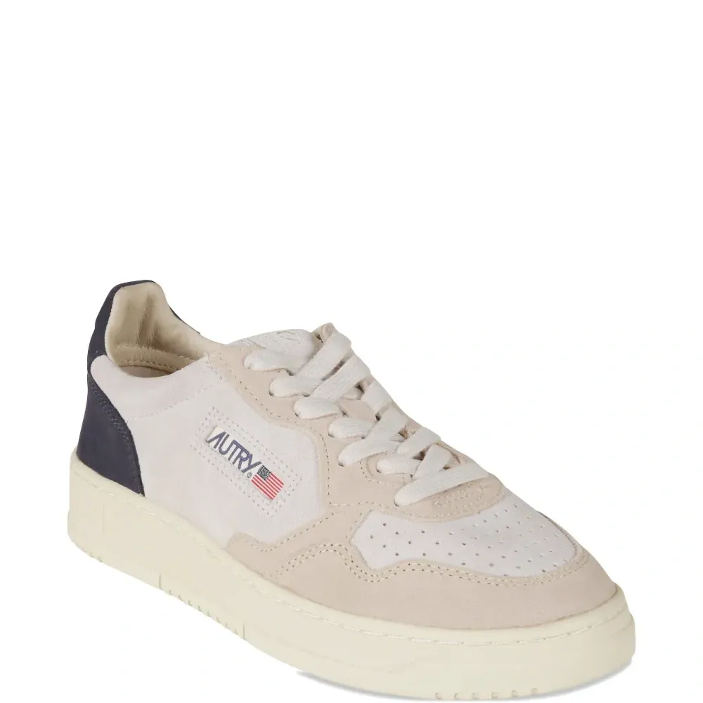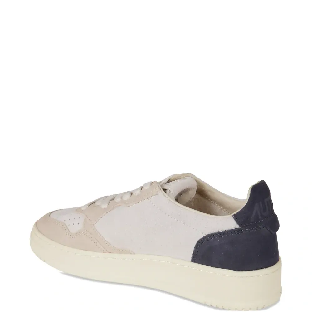 светло-бежевый цвет, панели в дизайне, перфорированные детали, принт с логотипом, шнуровка, мягкий бортик