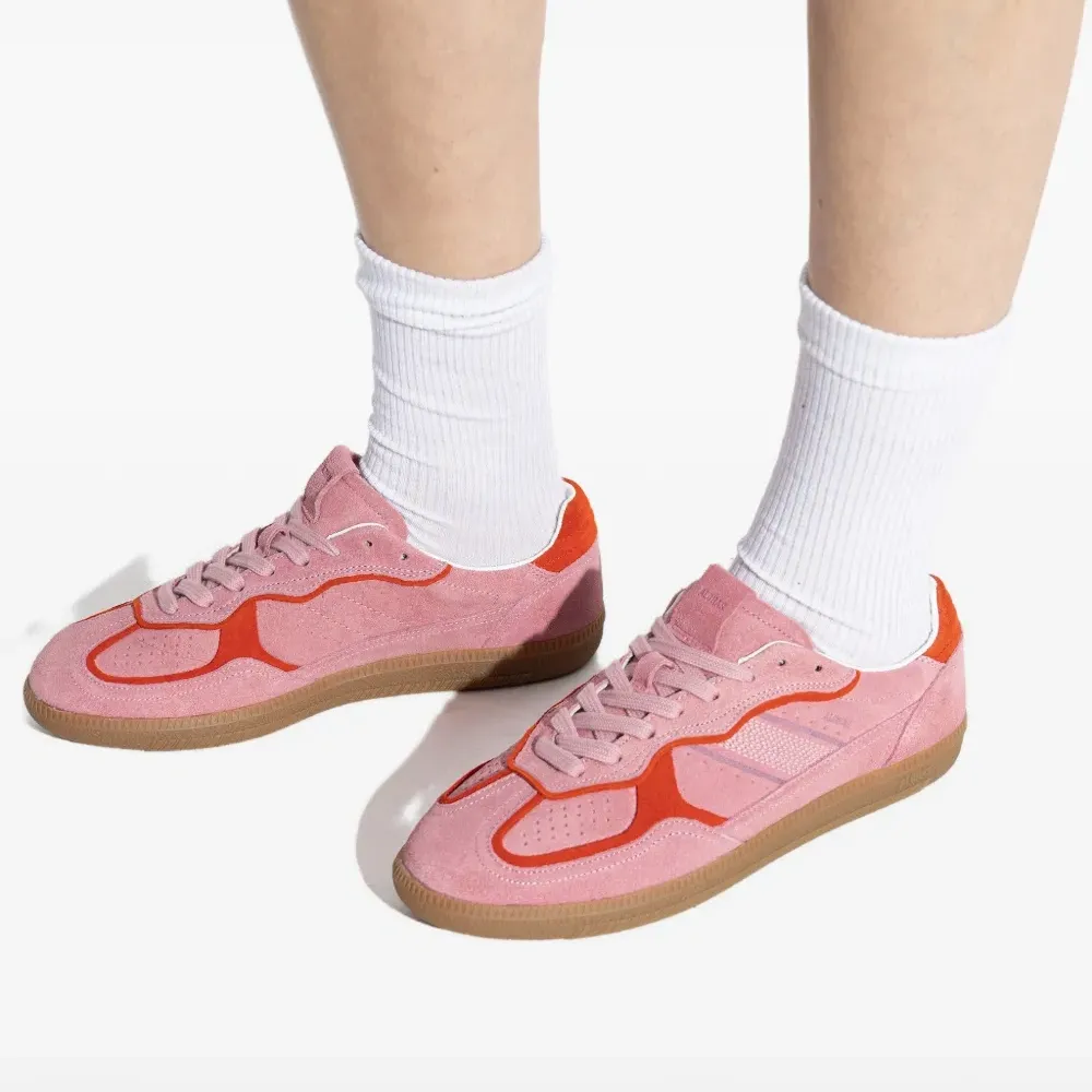 верх из розовой замши, многослойный дизайн, шнуровка, резиновая подошва