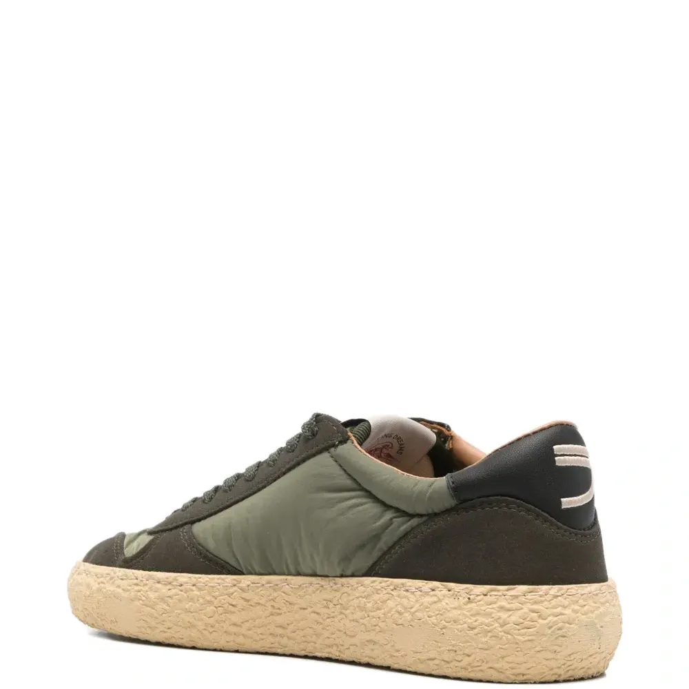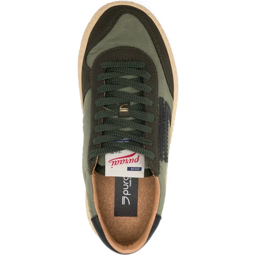 зеленый цвет, круглый носок, текстурированная подошва, логотип, мягкий воротник, шнуровка