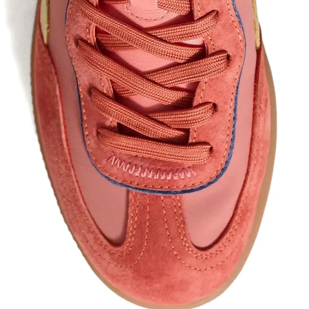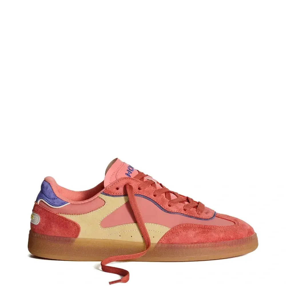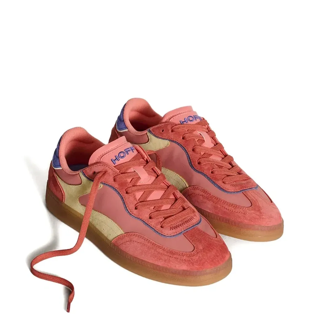 розовый цвет, панельный дизайн, шнуровка, логотип, контрастная отделка, плоская подошва