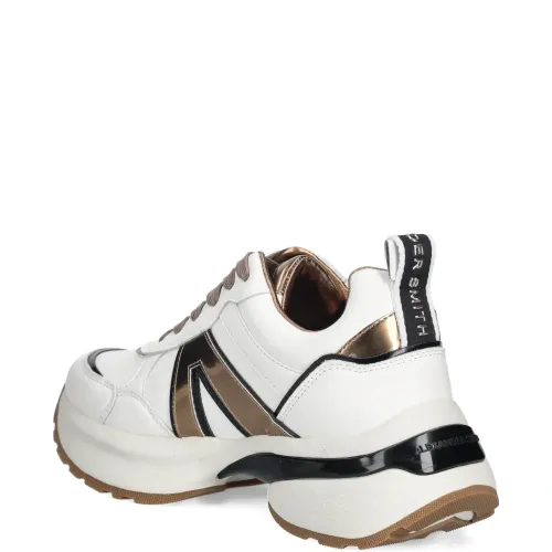 белая петля с логотипом на пятке, шнуровка, массивная резиновая подошва, платформа