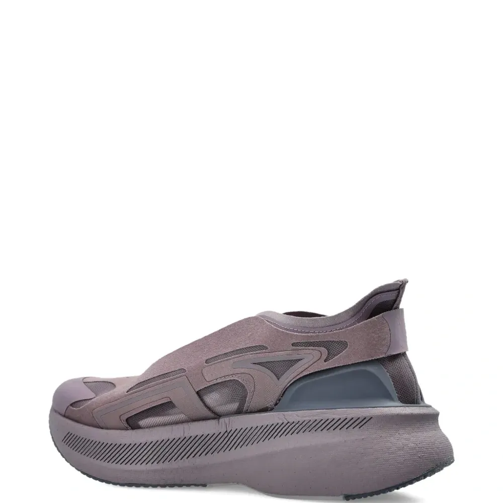 фиолетовая фактурная подошва, многослойный дизайн, шнуровка, логотип