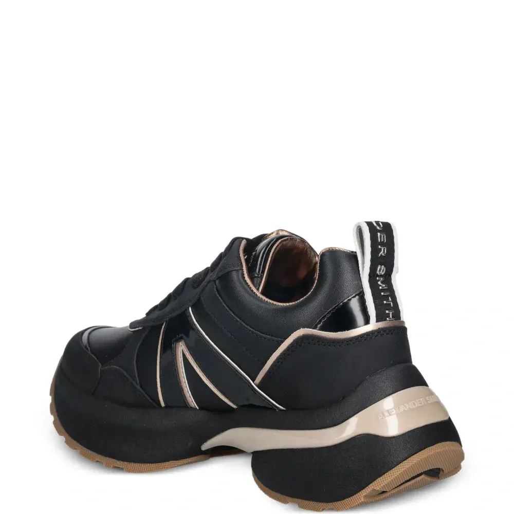 чёрный цвет, панельный дизайн, рифлёная подошва, шнуровка, задняя петля, платформенная подошва