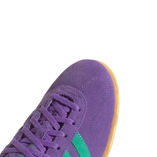 фиолетовые с тремя полосками, шнуровкой, резиновой подошвой, с логотипом и контрастным задником