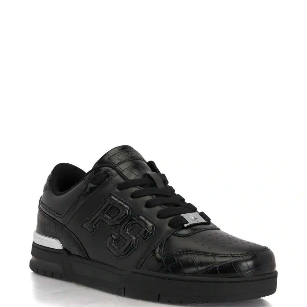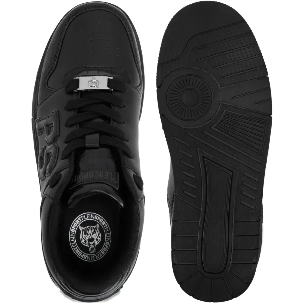 чёрные кроссовки с тиснением под крокодила, перфорированным мыском, нашивкой с логотипом, деталями с никелевым покрытием и рифлёной подошвой