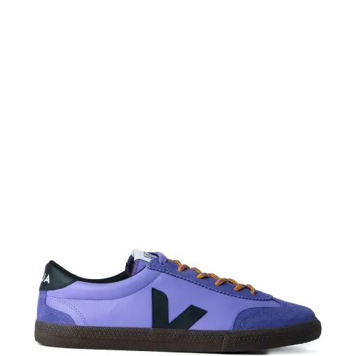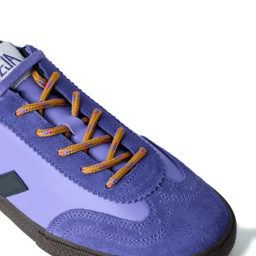 фиолетовые низкие кеды с круглым мысом, шнуровкой и резиновой подошвой