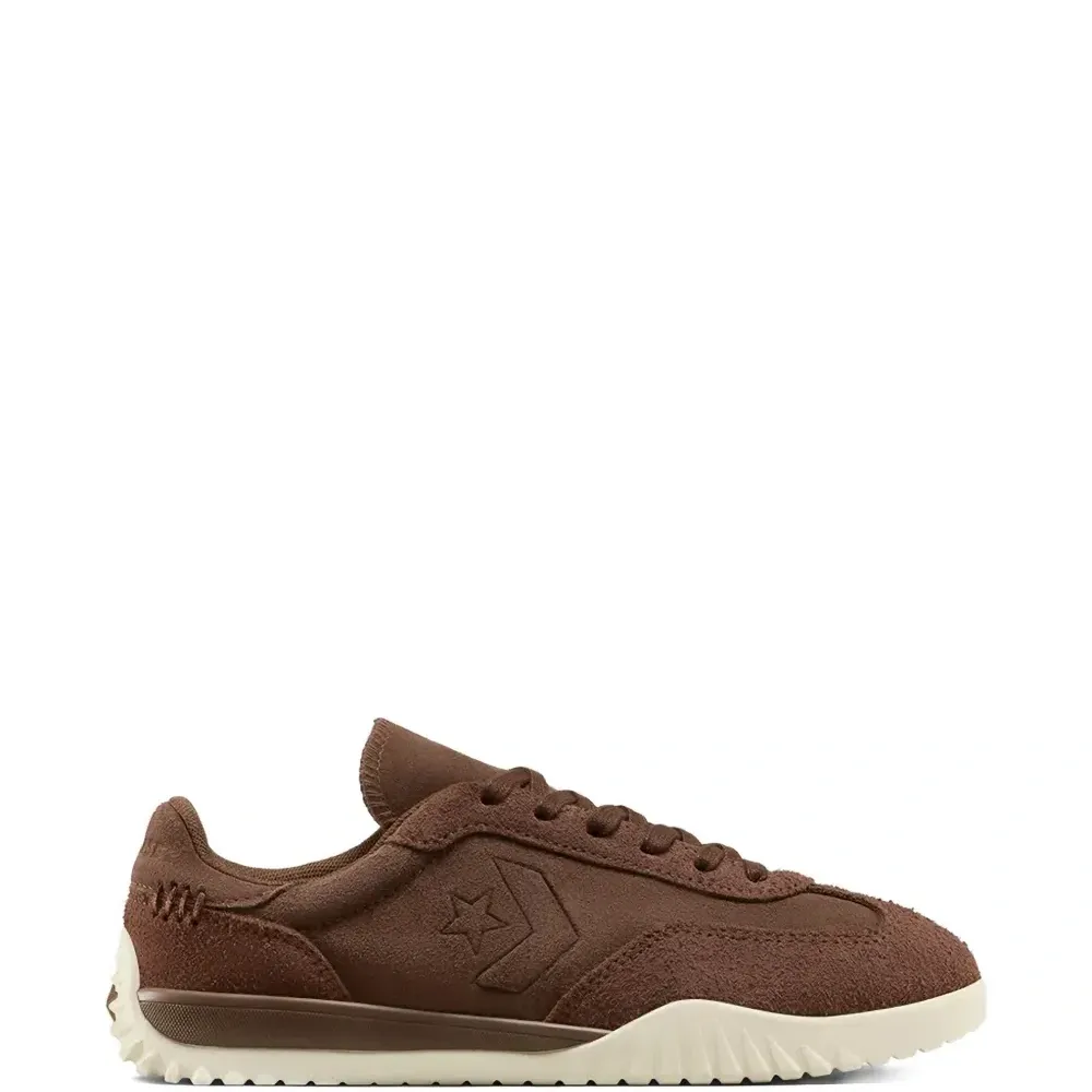 коричневый цвет, логотип в виде звезды, шнуровка, рифленая подошва, многослойный дизайн, круглый носок