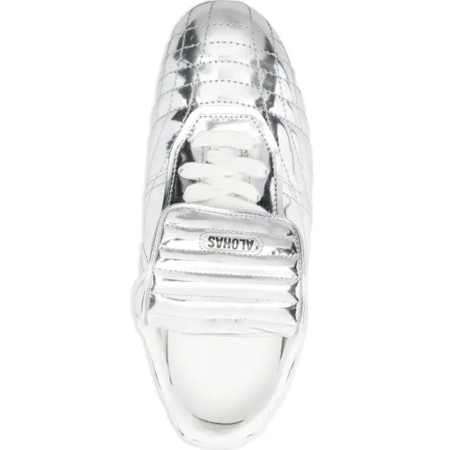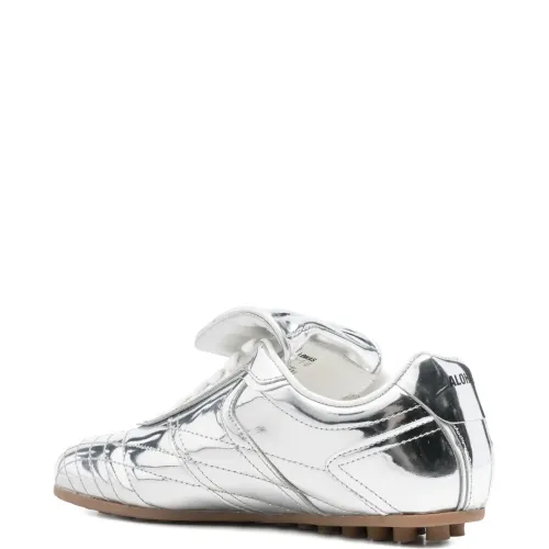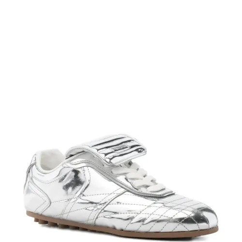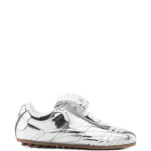 серебристый цвет, стёганые детали, шнуровка, резиновая подошва