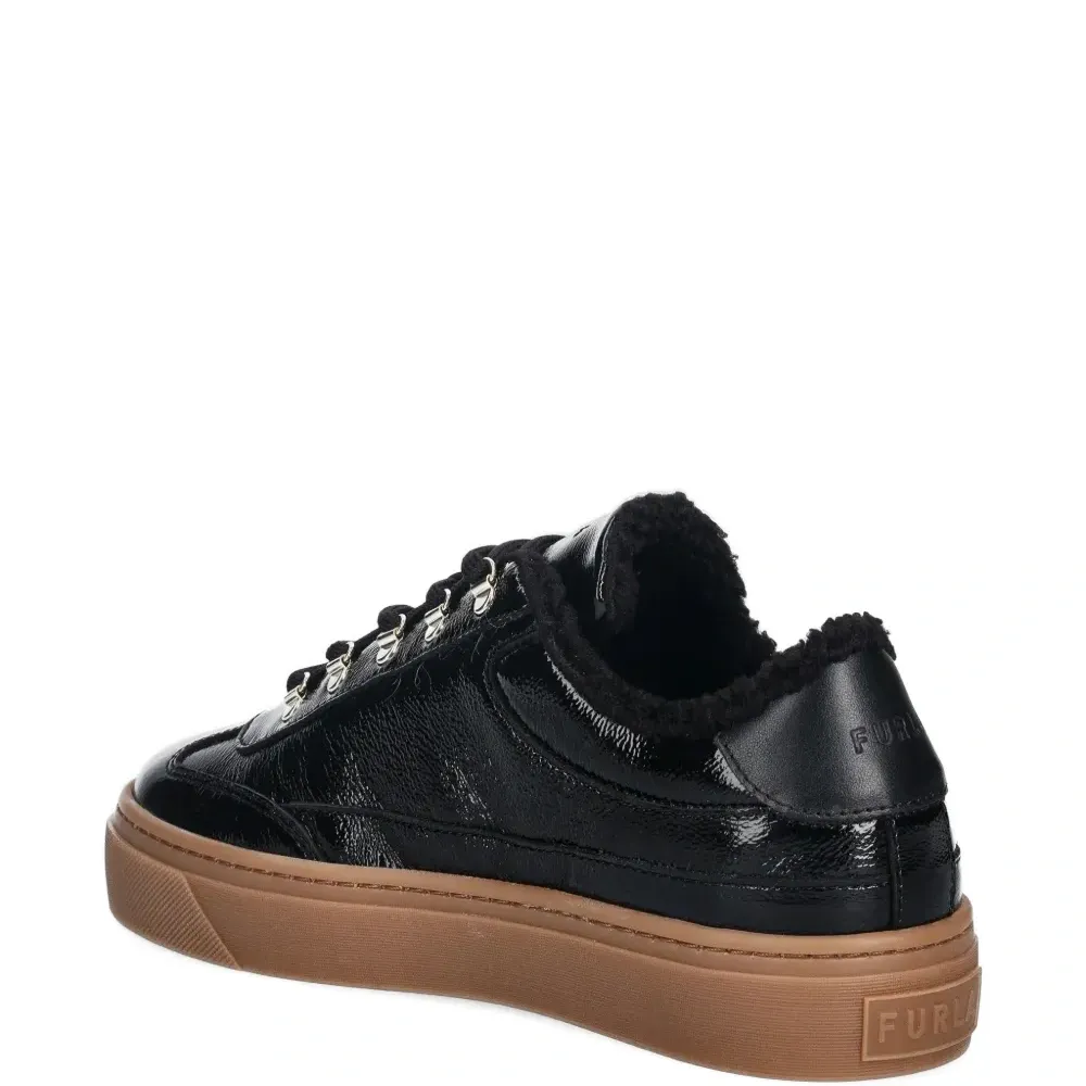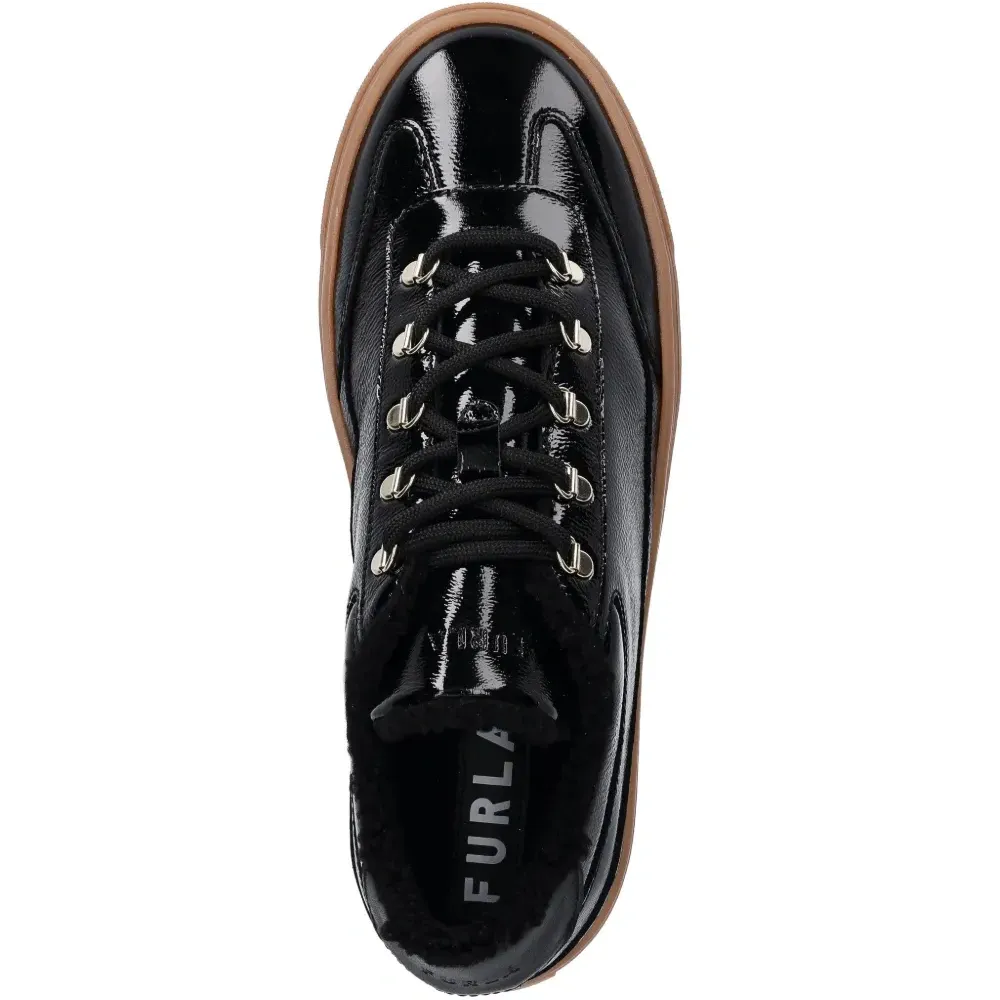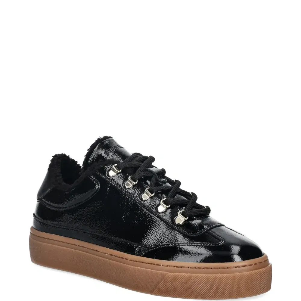 черный лаковый блеск, шнуровка, платформенная подошва, круглый носок