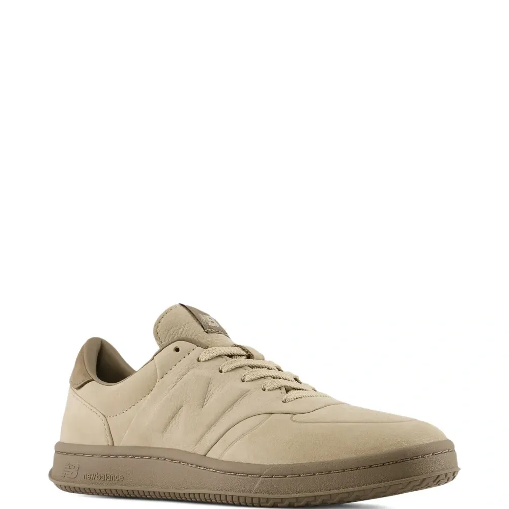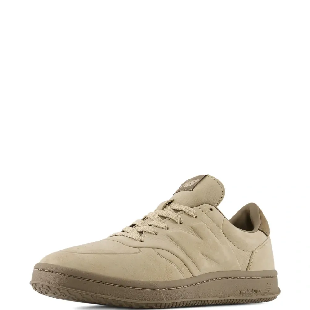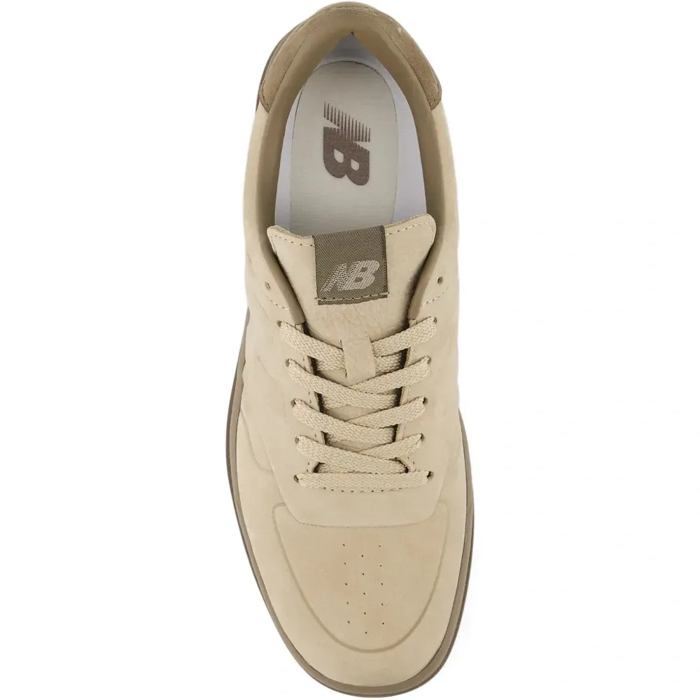 светло-коричневая замшевая конструкция, перфорированный мысок, шнуровка, нашивка с логотипом, логотип на пятке