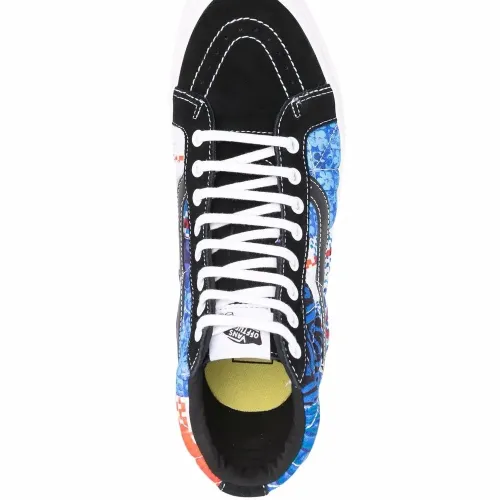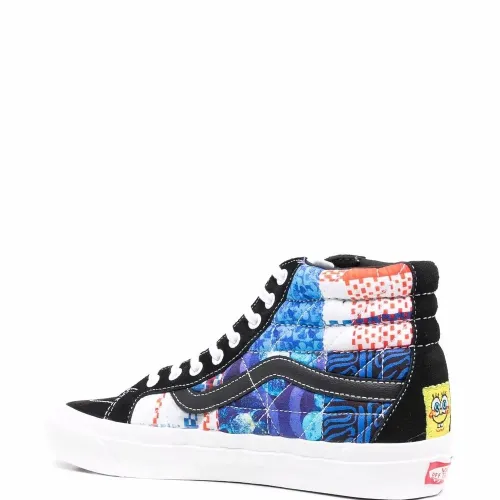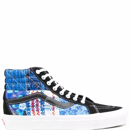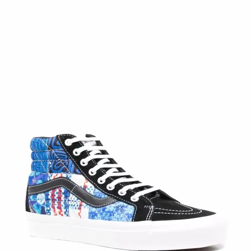 Техника пэчворк, нашивка с логотипом сбоку, контрастная строчка, закругленный носок, шнуровка спереди и длина по щиколотку.