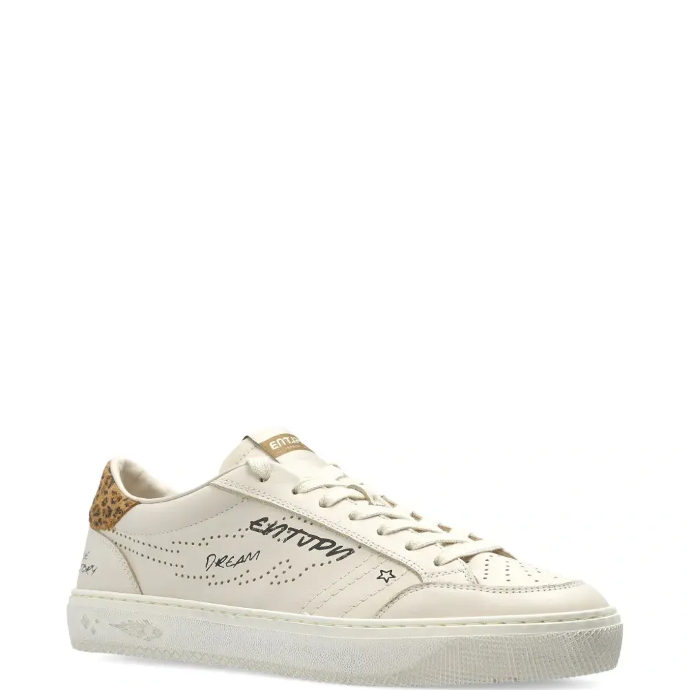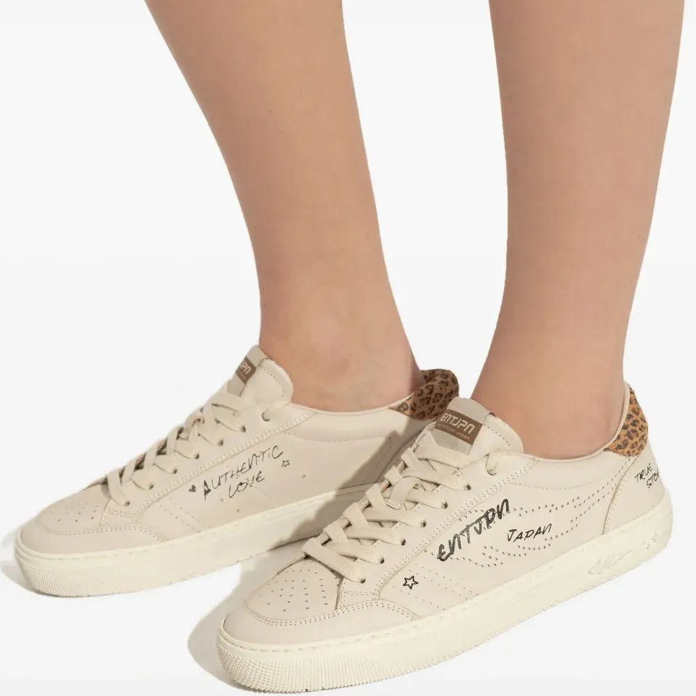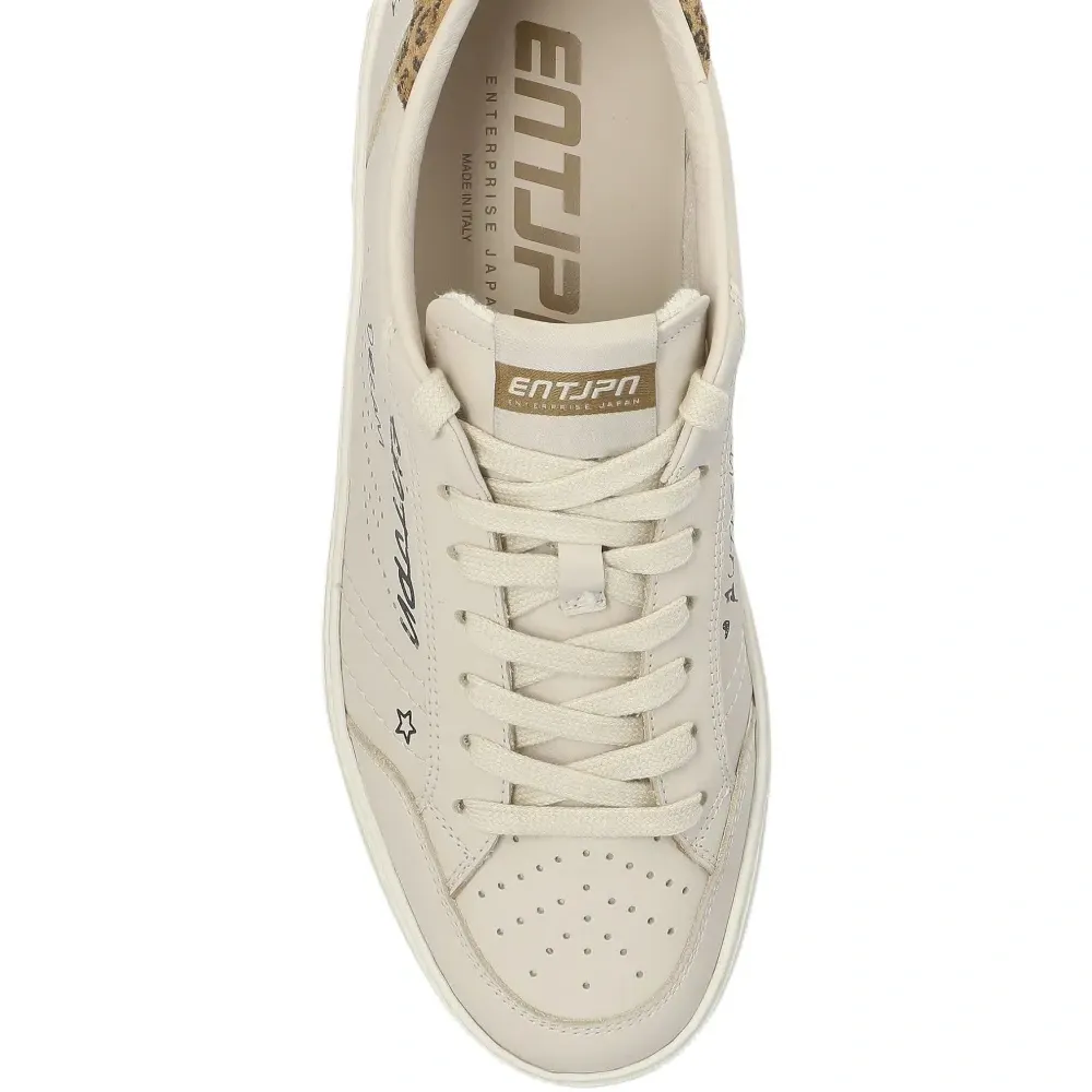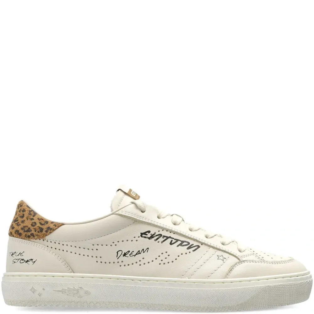 белый цвет, леопардовый принт на заднике, перфорированные детали, резиновая подошва, шнуровка