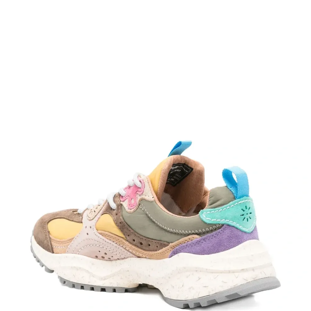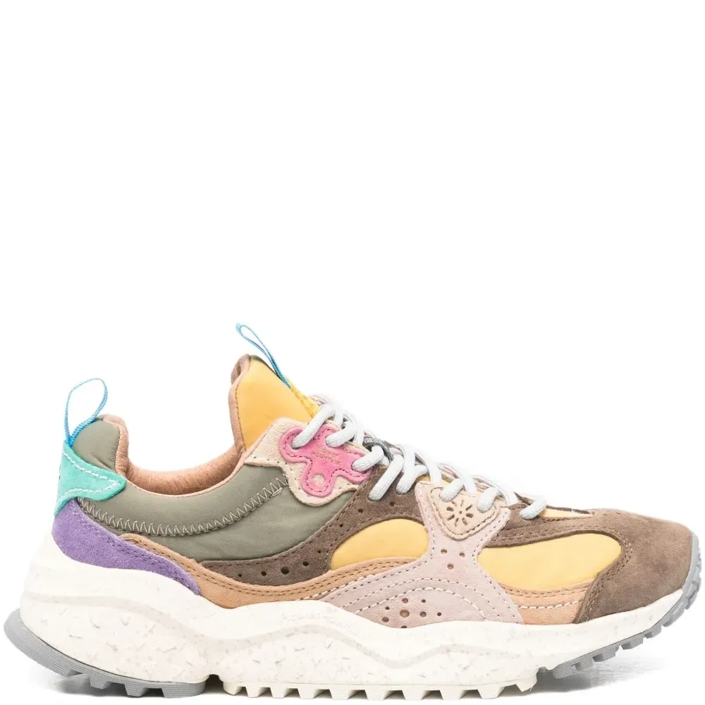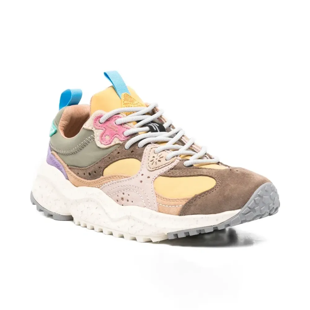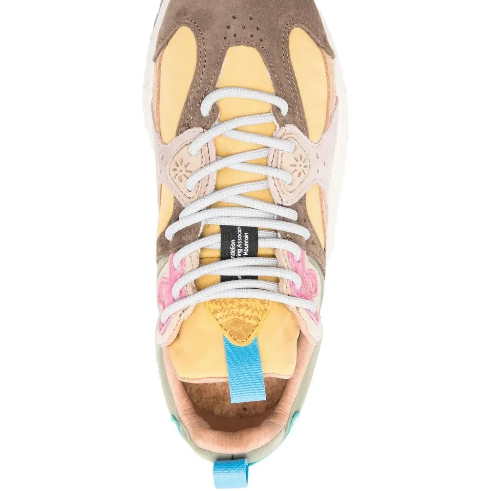 жёлтый и разноцветный многоцветный дизайн с панелями, шнуровка, петли для быстрого надевания, перфорированные детали