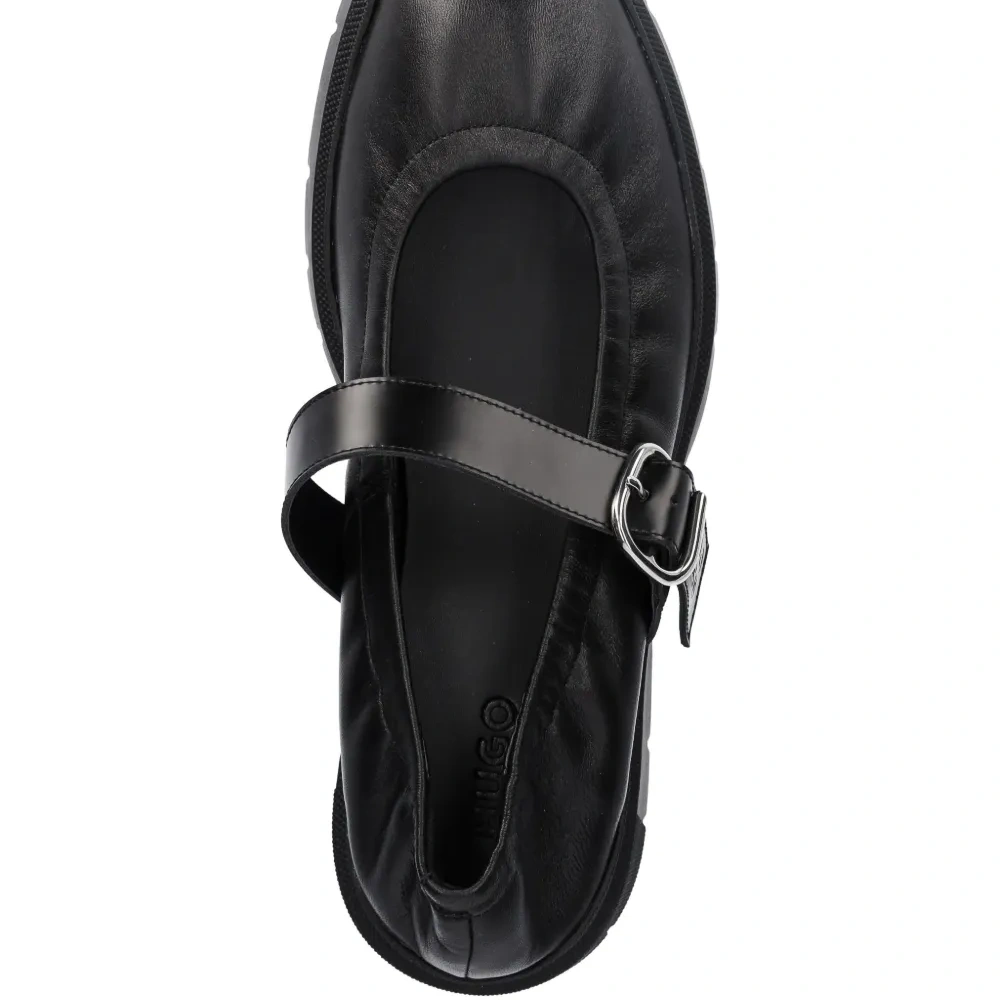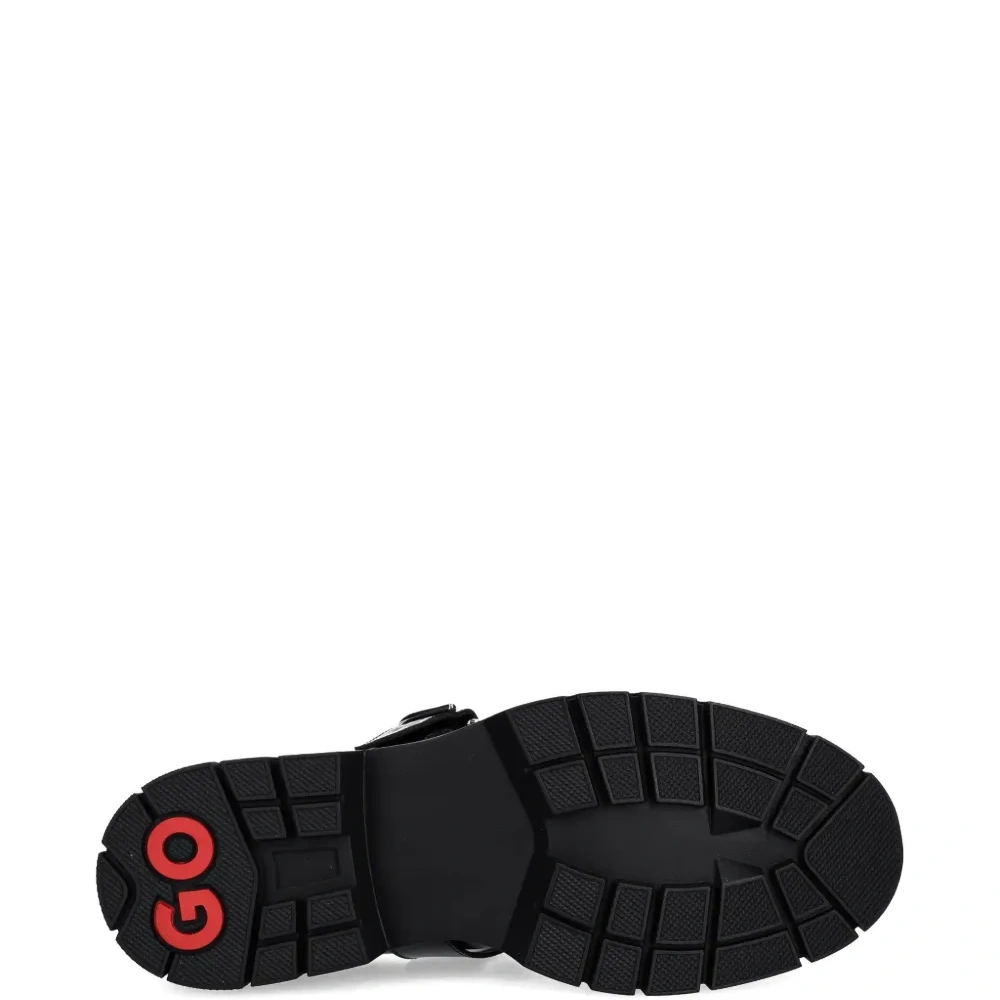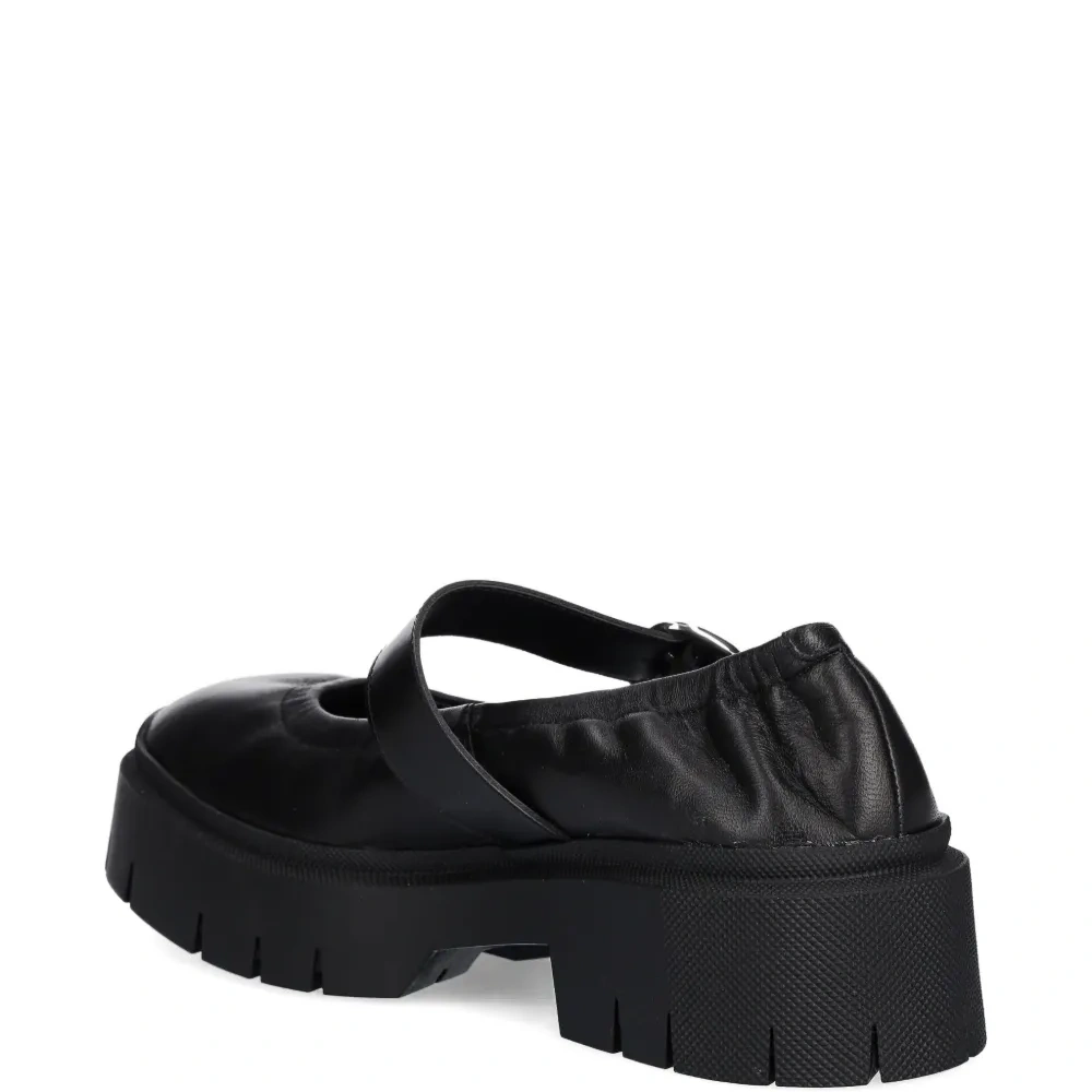 черный ремешок, застежка-пряжка, платформа, круглый носок, эластичная отделка